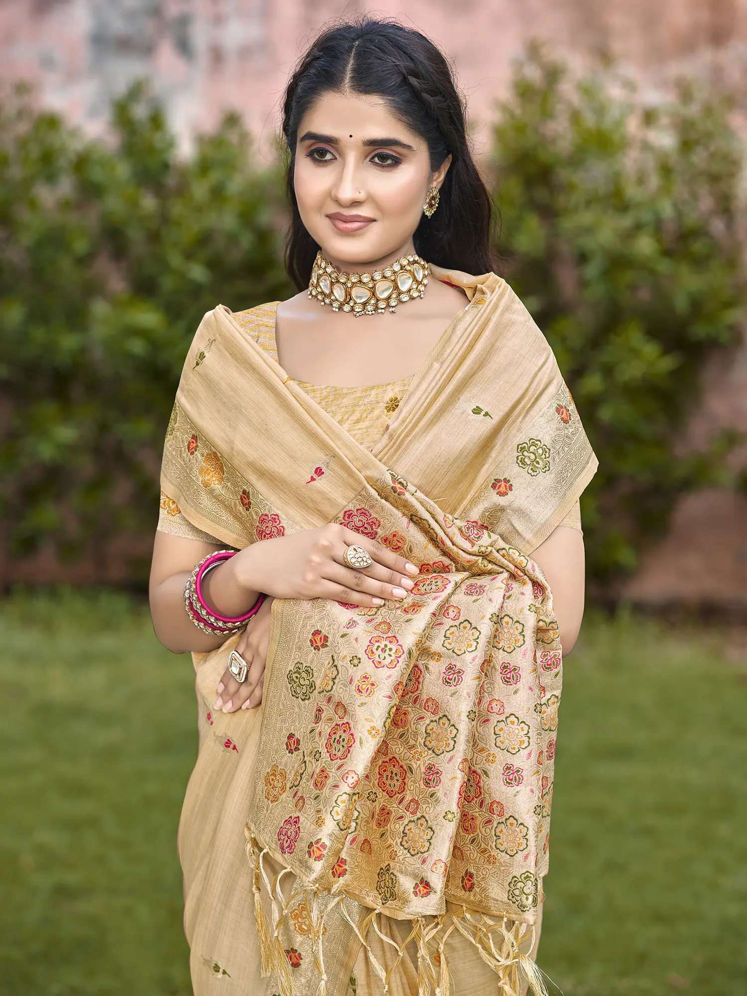 Parsnip Fabric from Assam with Woven Bootis and Florals