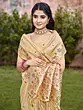 Party Wear Vichitra Silk Saree With Gold Zari Work On Border And Motifs All-Over