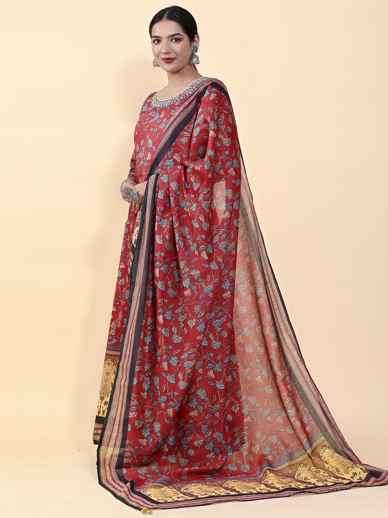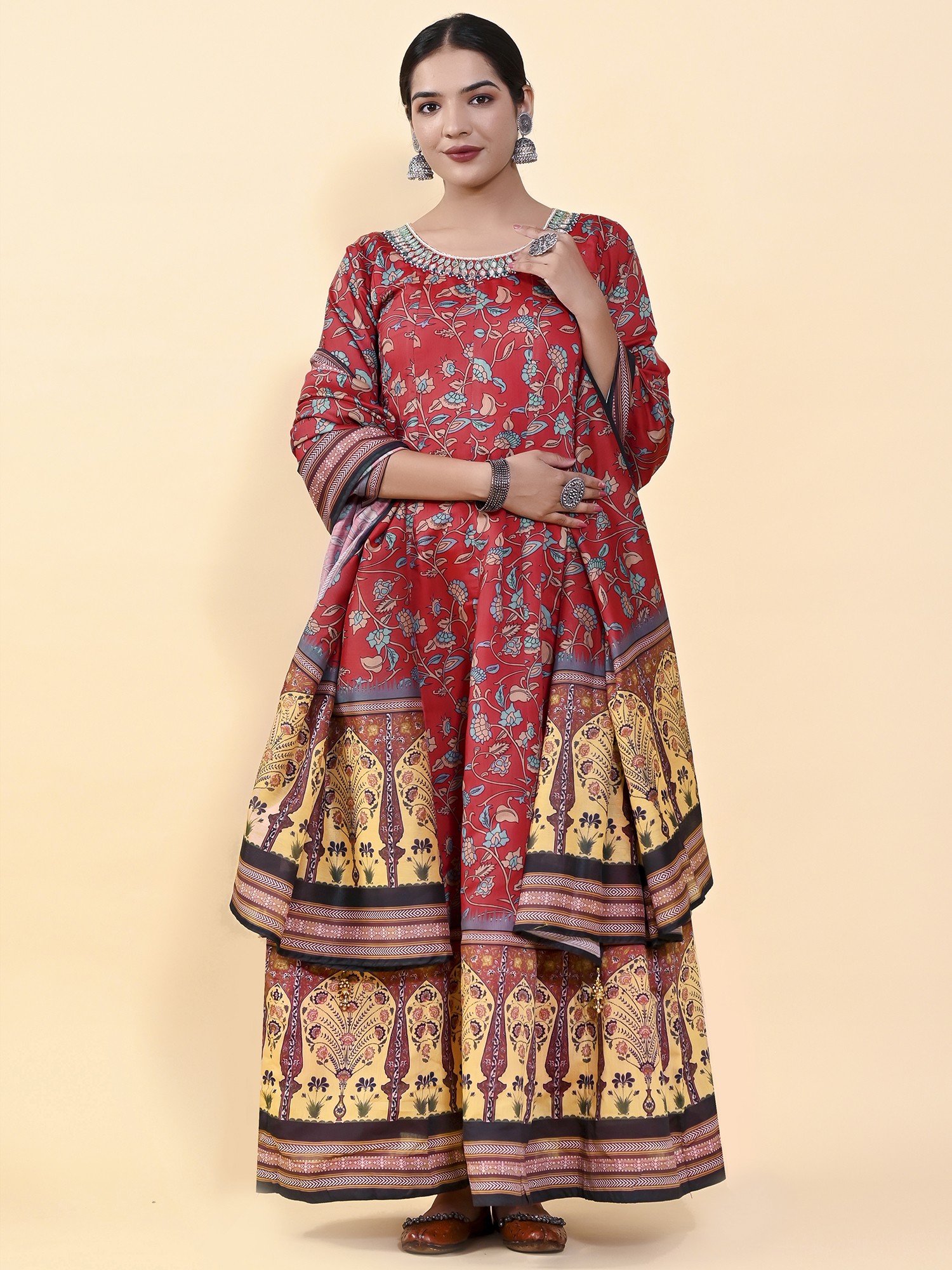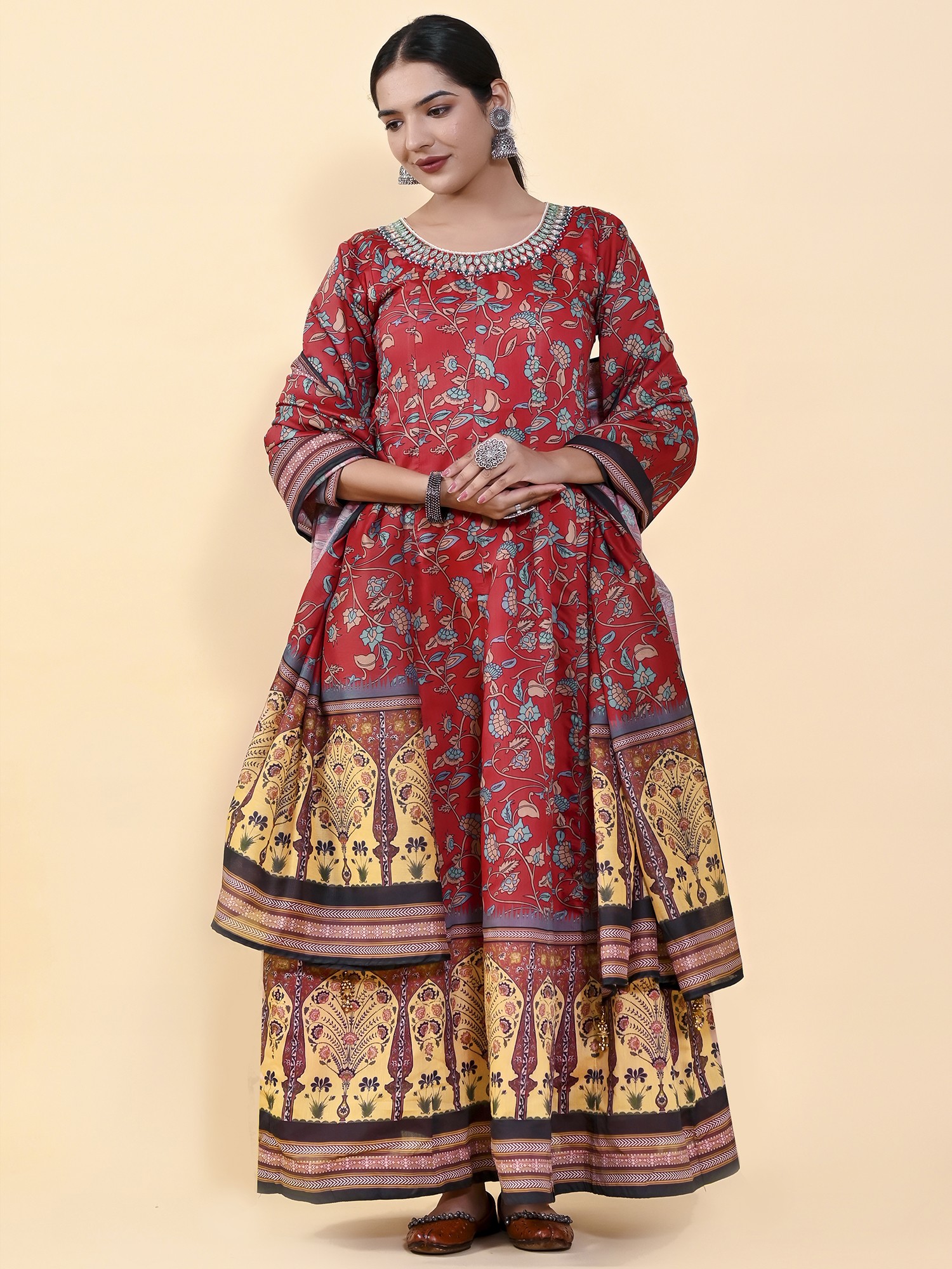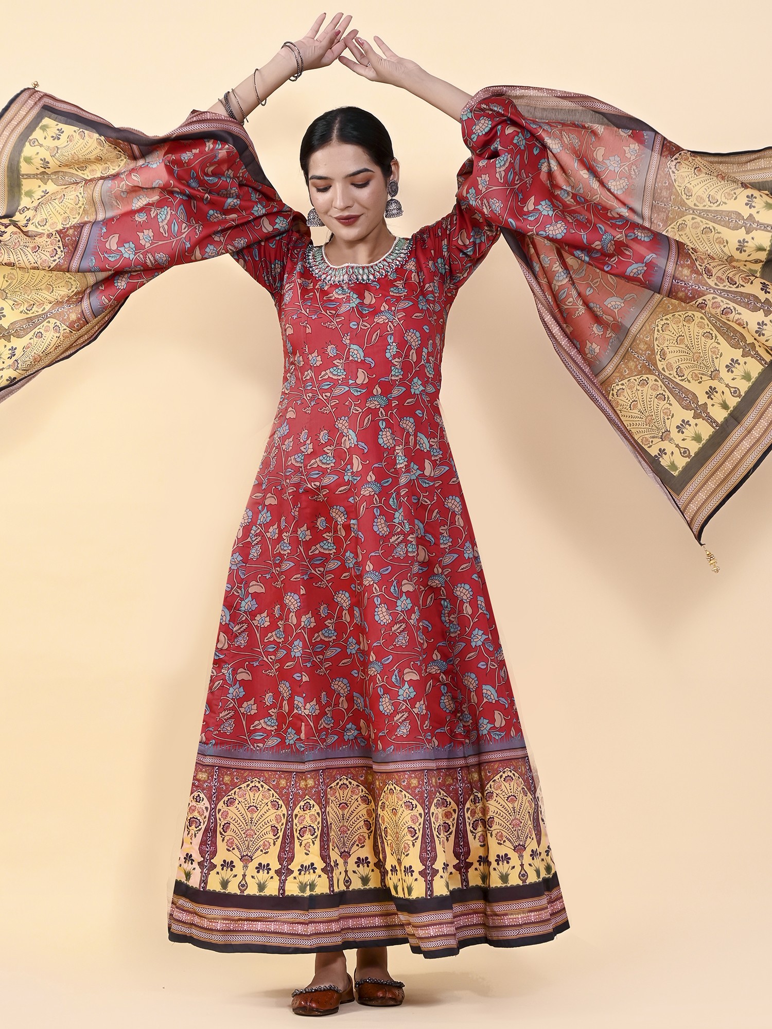 Heavy Chanderi Silk Floral Vine Digital Printed Anarkali Gown With Matching Dupatta