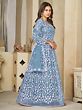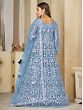 Make a statement with this breathtaking heavy floral embroidered Anarkali suit. Crafted from luxurious net fabric, this semi-stitched ensemble drapes beautifully, creating a silhouette that is both graceful and sophisticated. The delicate, yet intricate, white embroidery cascades across the entire suit, transforming it into a wearable masterpiece. This stunning dusty blue hue adds a touch of modern elegance to the classic Anarkali design, making it perfect for weddings, special occasions, or any event where you want to radiate confidence and charm. The exquisite detail in the embroidery is sure to turn heads, leaving a lasting impression wherever you go.