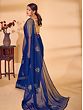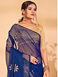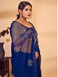 This heavy shimmer saree is a celebration of opulence. Mukaish work transforms it into a galaxy of sparkling stars. The bold floral butta design is a statement of elegance. As you wear it, you become a celestial being, a starry night in human form. In this saree, you are the embodiment of luxury and allure.
