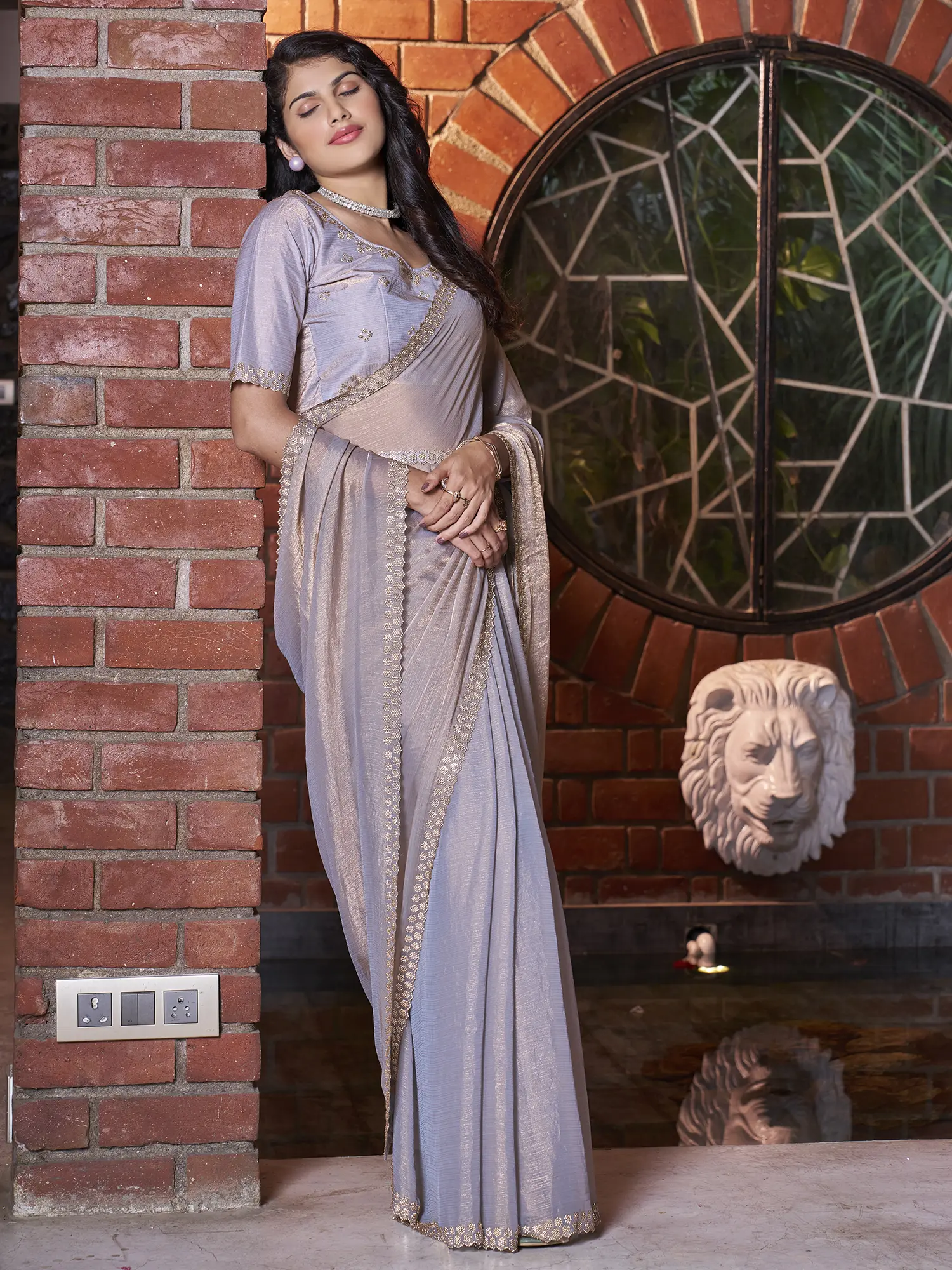 Soft Organza Heavy Zircon Border And Sequins Embroidery Work Saree With Matching Blouse