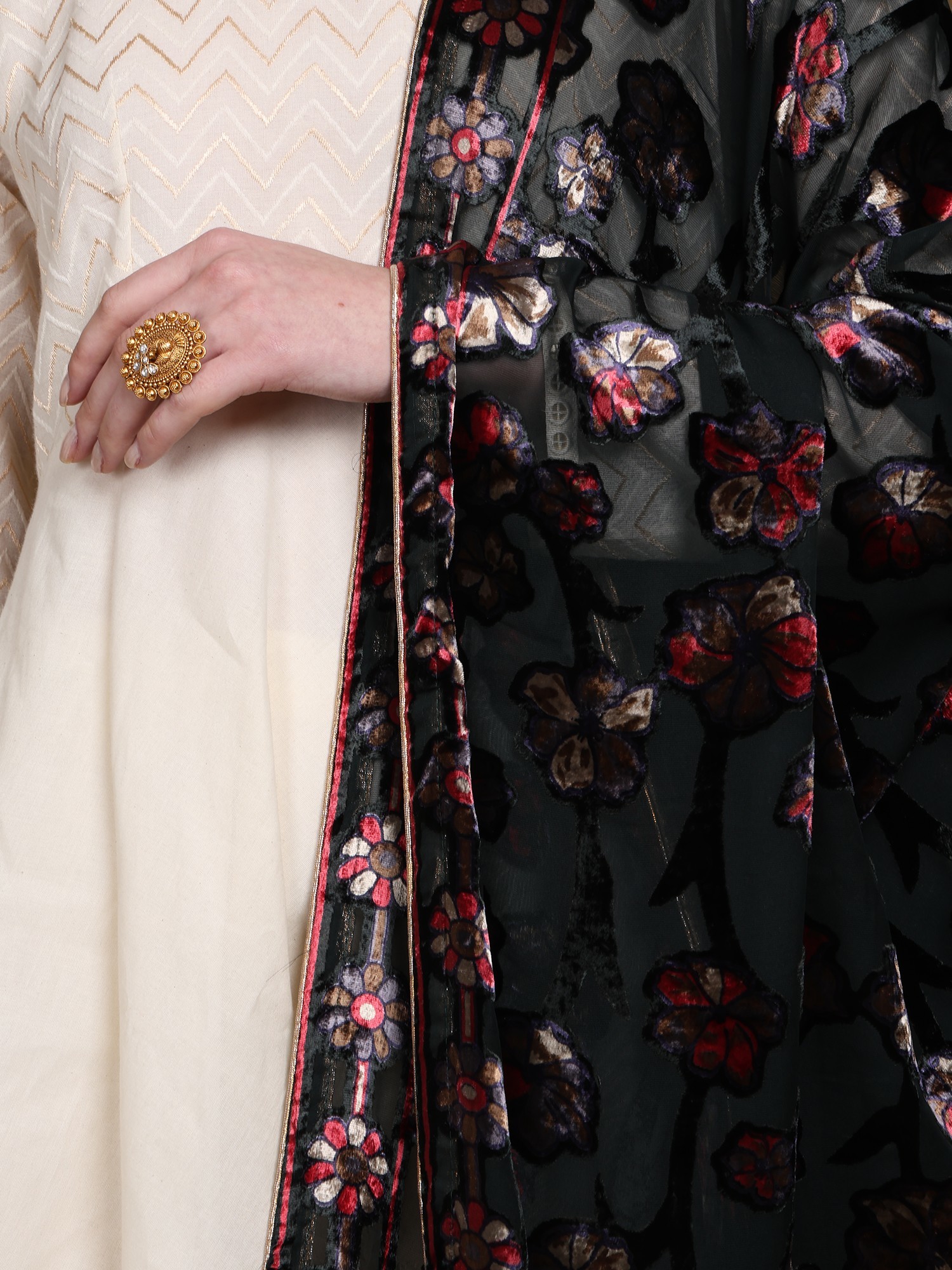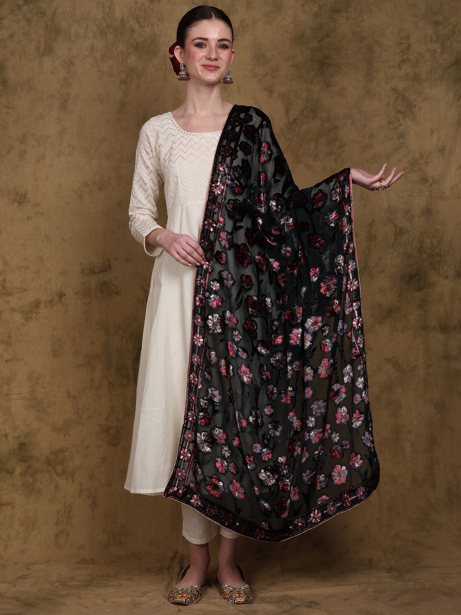 Hibiscus Floral Pattern Brasso Velvet Dupatta from Amritsar