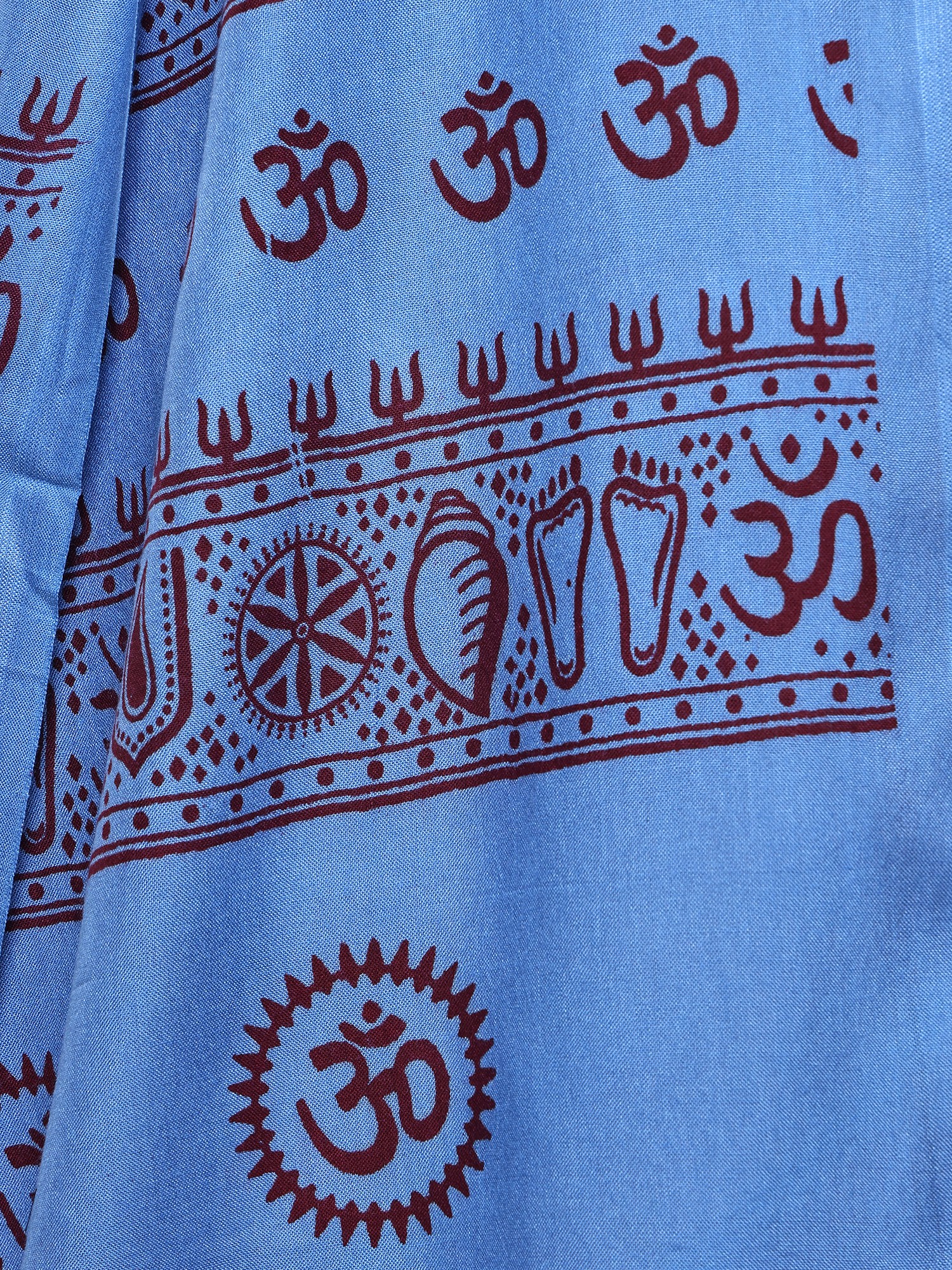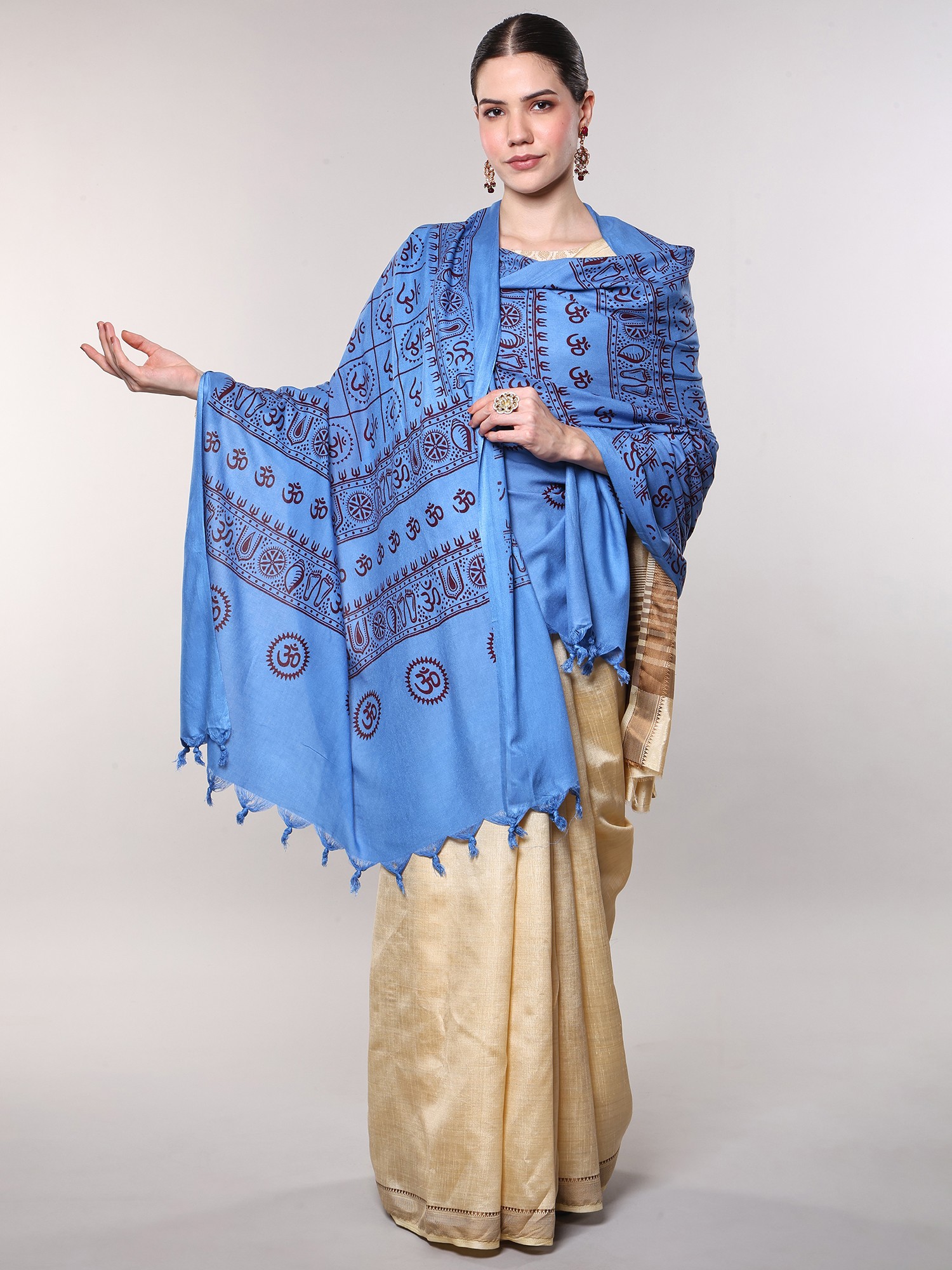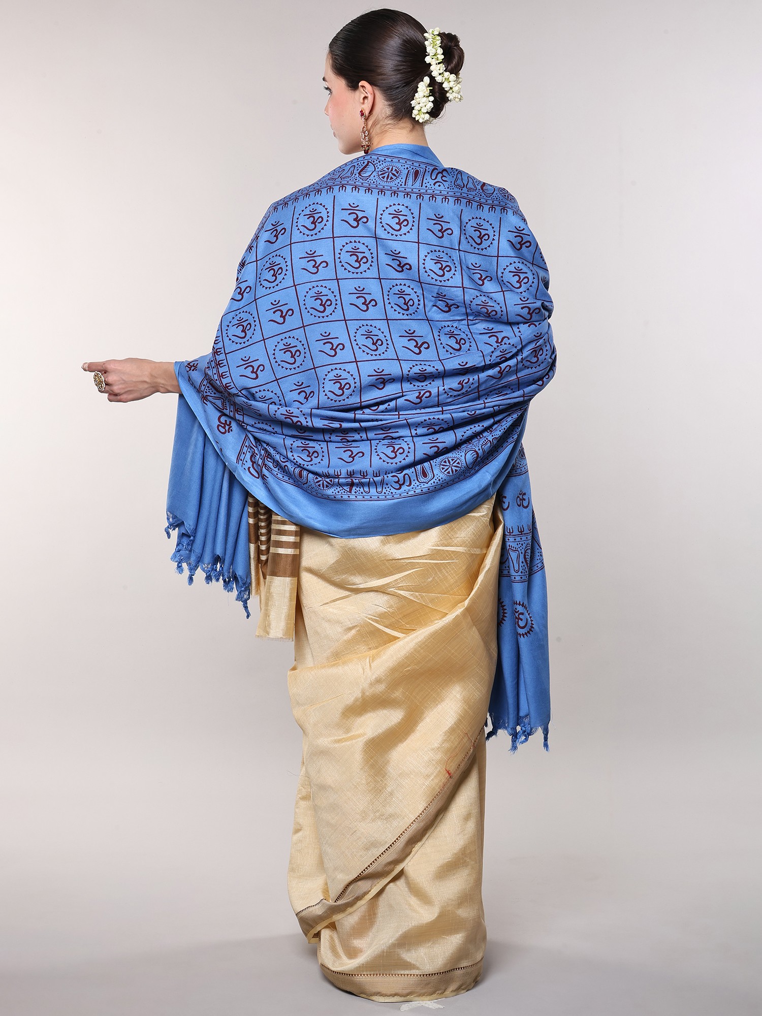The shawl features a thoughtfully designed print that resonates with spiritual significance. The sacred Om symbol, repeated throughout the design, is a powerful mantra representing the essence of the universe. Its presence on the shawl serves as a constant source of positive energy and spiritual awakening. The carefully arranged pattern is not only visually appealing but also acts as a visual aid, guiding you deeper into your meditative state. The rich detailing of the print complements the pristine base, creating a harmonious balance between tradition and elegance.