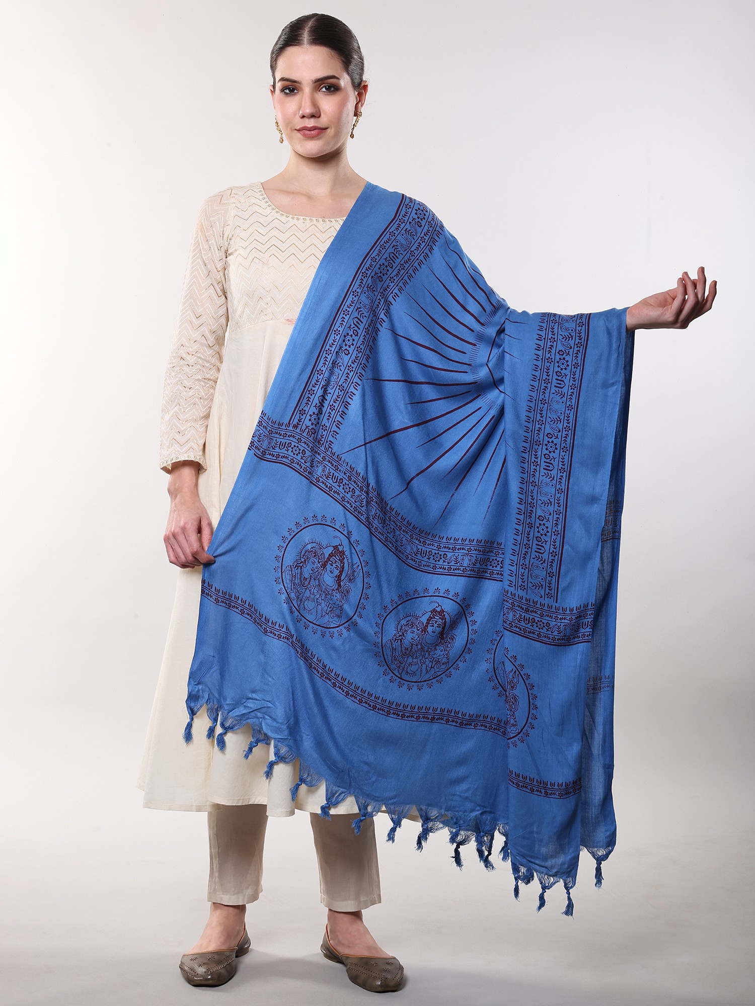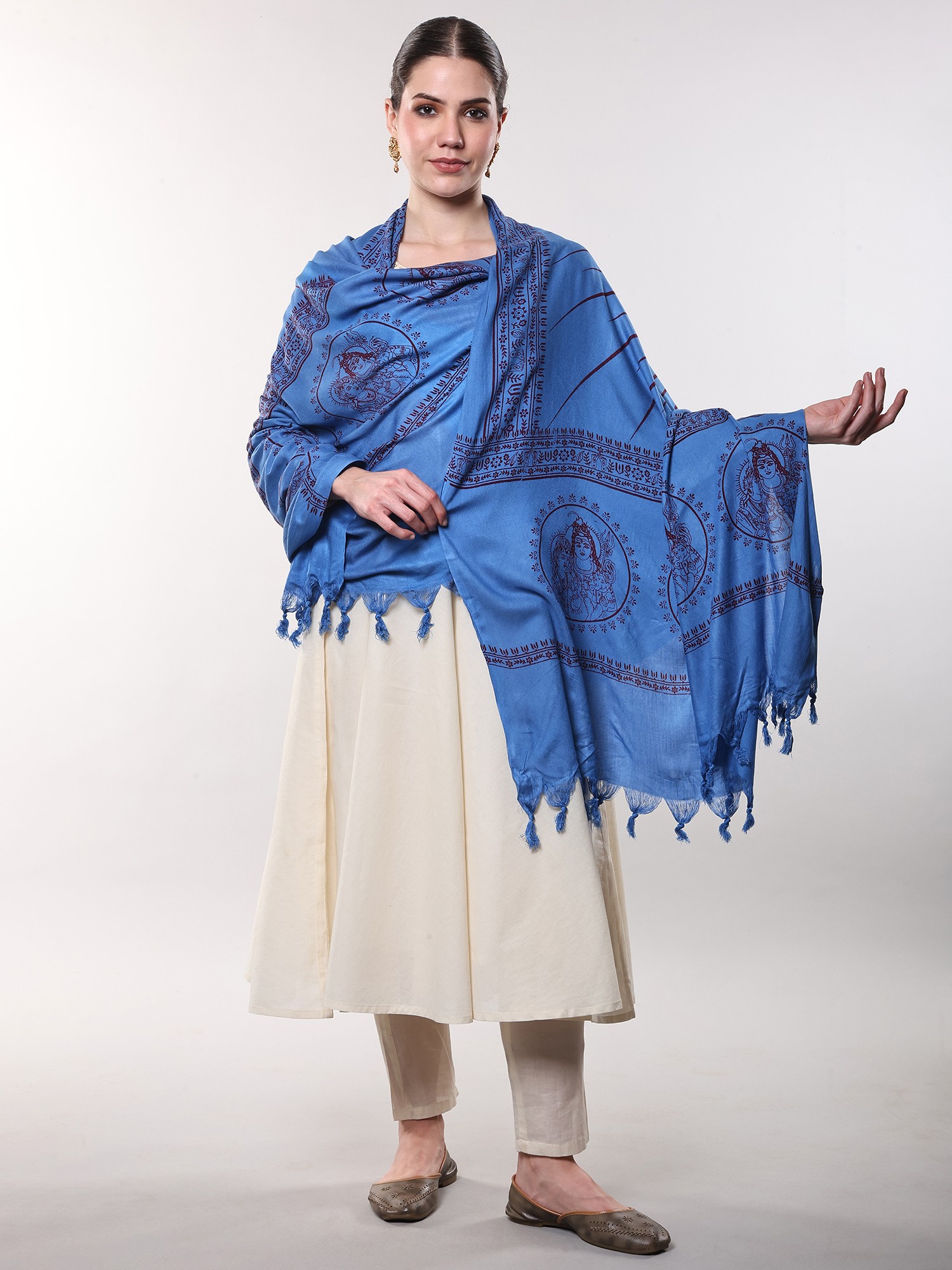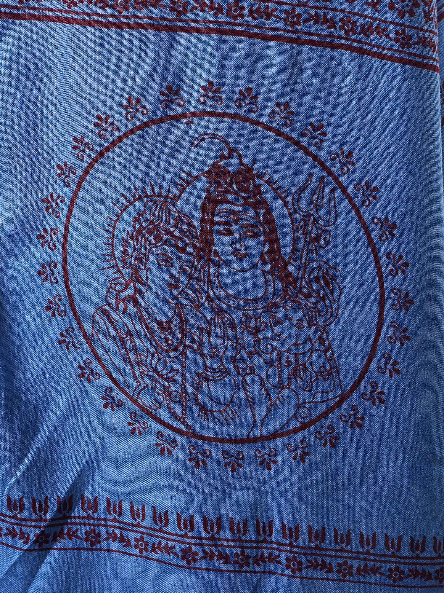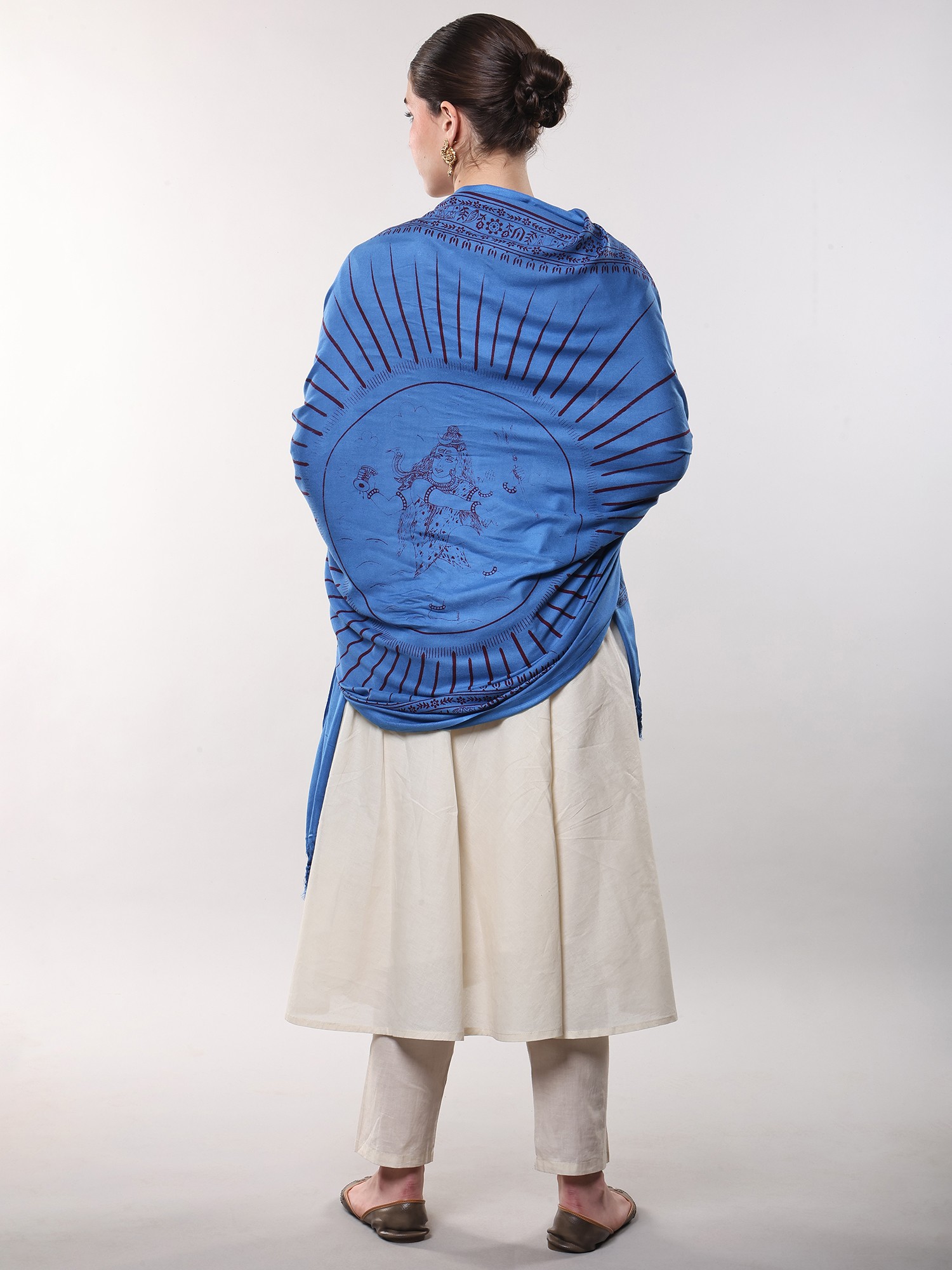This holy shawl, which is made of premium poly cotton, blends comfort and spirituality in a seamless manner. Perfect for meditation or prayer, it envelops you in the peace of ancient iconography, promoting a connection to the Almighty. The dancing Shiva depicts the rhythmic flow of life, destruction, and creation, making this shawl not only a piece of apparel, but a spiritual companion. Let the brilliant blue tones and magical iconography inspire peace and grace in your spiritual activities.