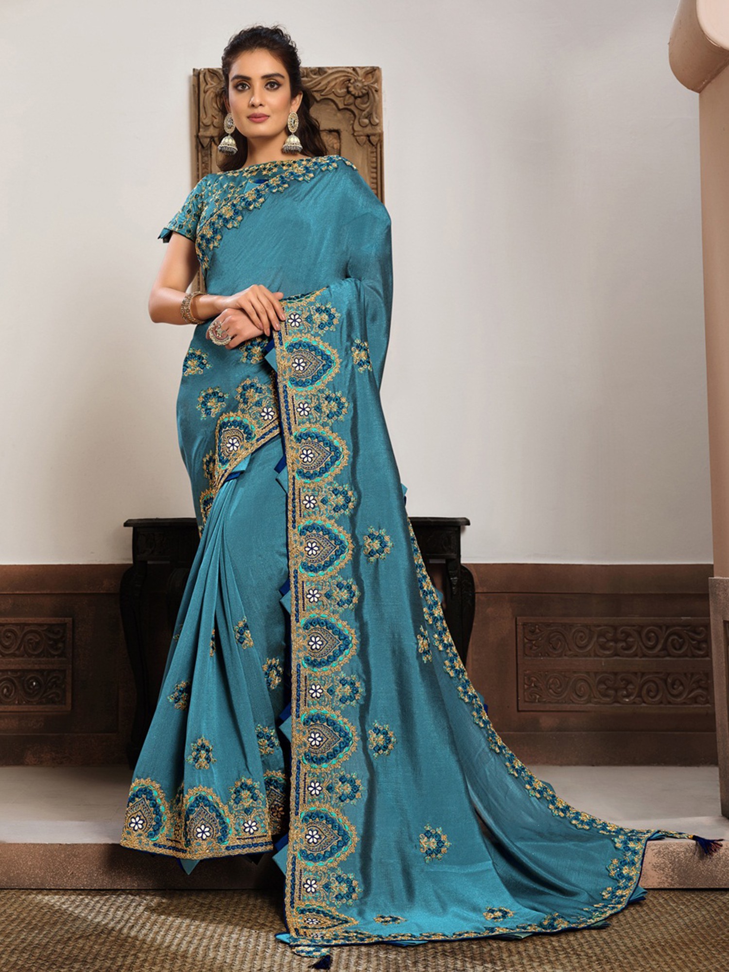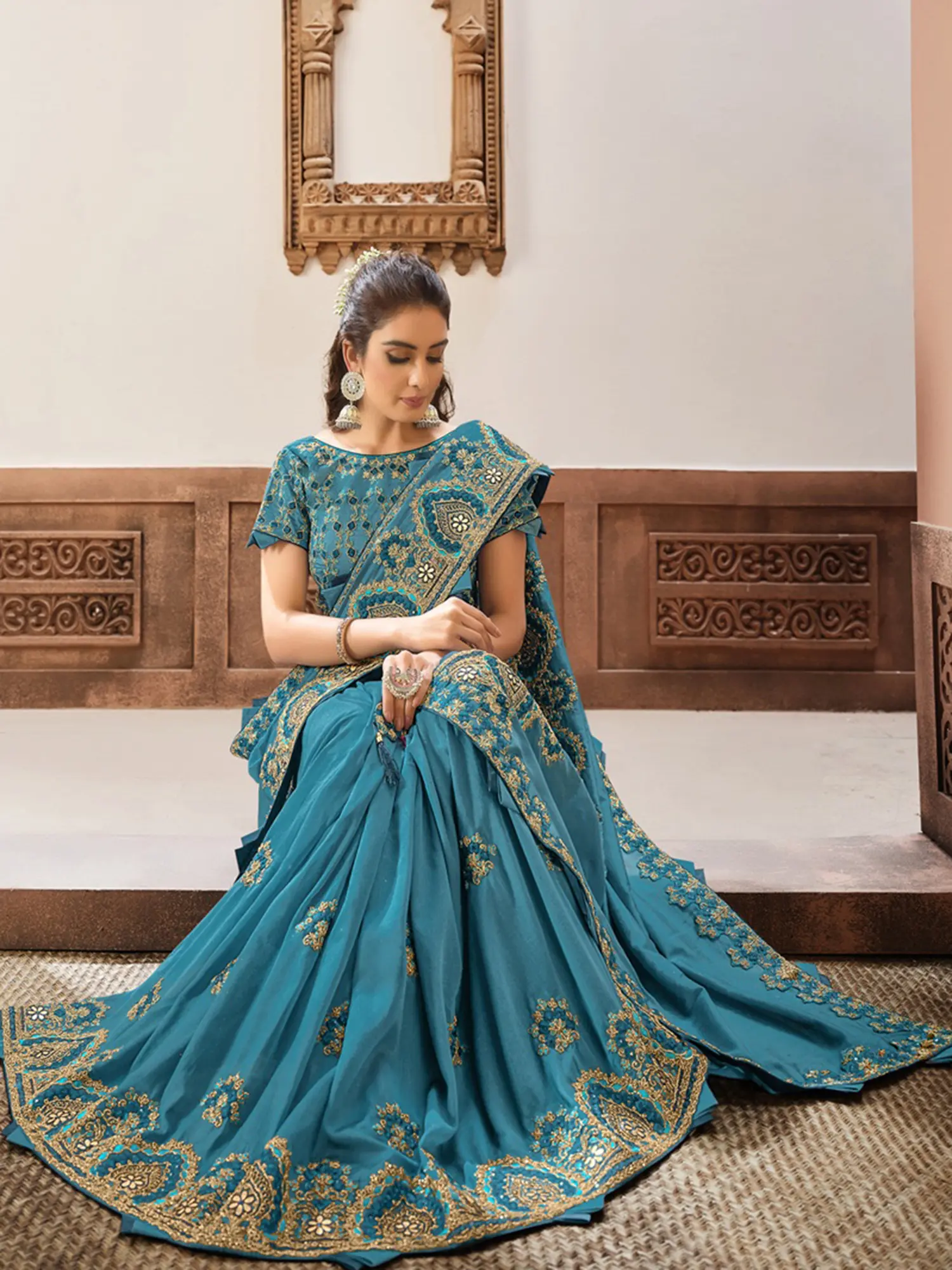Georgette Kashmiri Saree with Kashida Embroidery