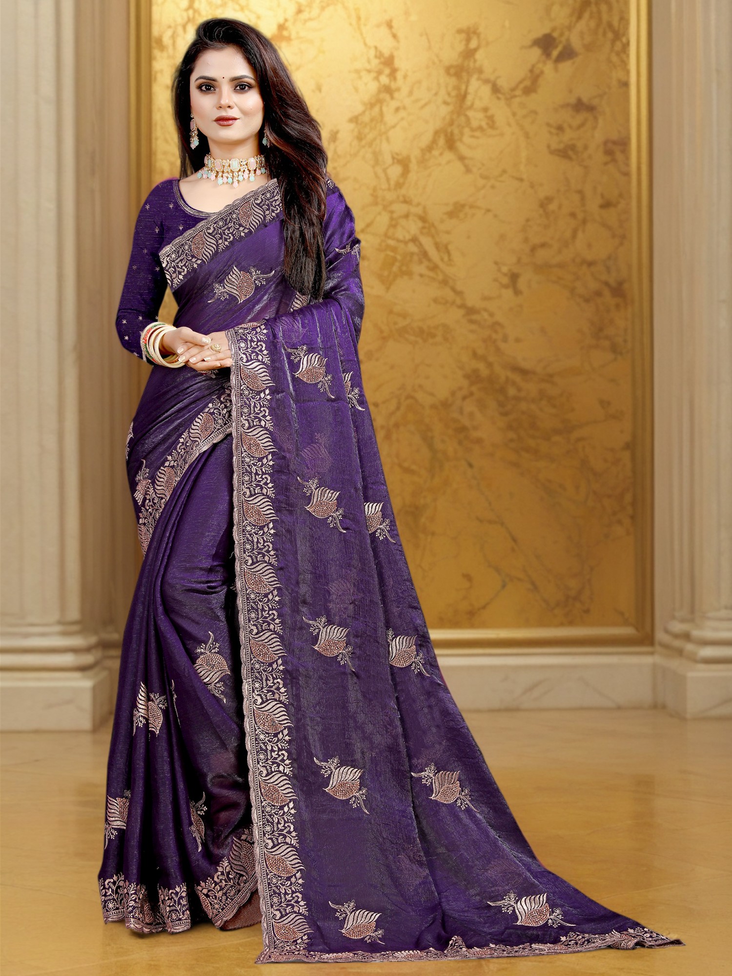 Purple-Haze Sequins Work Floral Border Fancy Embellished Chiffon Festive Wear Saree