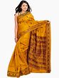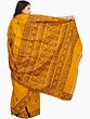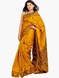 The versatile honey-gold color makes this sari a perfect canvas for various styling options. Pair it with traditional gold jewelry for a classic look, or experiment with contemporary accessories to create a unique ensemble. The included blouse fabric allows for personalized tailoring, ensuring a perfect fit and a style that complements your individual taste. This sari is more than just an outfit; it's an investment in artistry, tradition, and timeless beauty, ready to be passed down through generations.