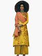 Honey-Yellow Long Palazzo Salwar-Kameez Suit with Zari-Embroidery and Peach Dupatta