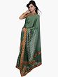 Hunter-Green Embroidered Wedding Sari with Mirror Work and Patch Border