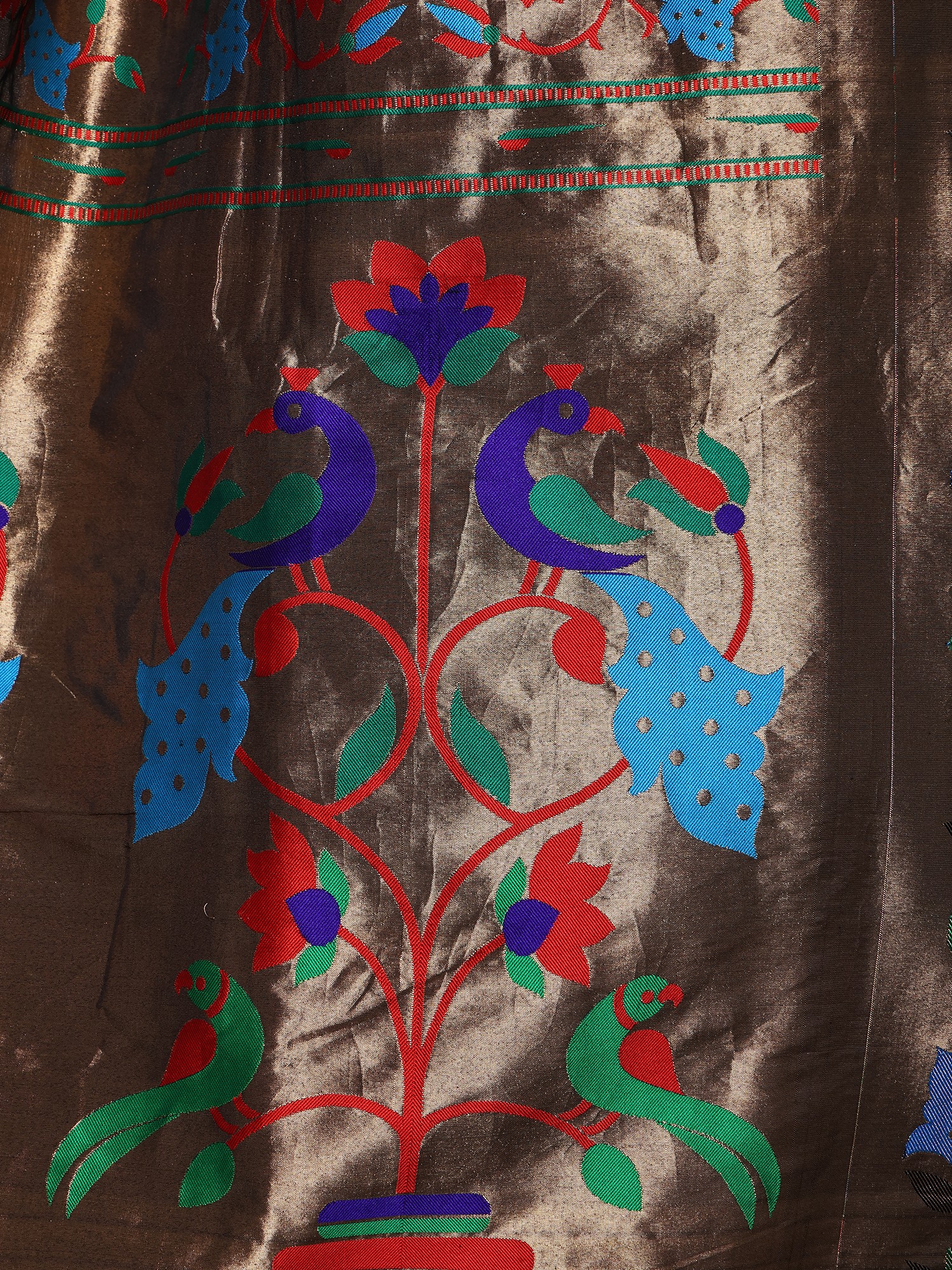 Paithani Silk Saree with Hand-Woven Peacocks on Border and Aanchal
