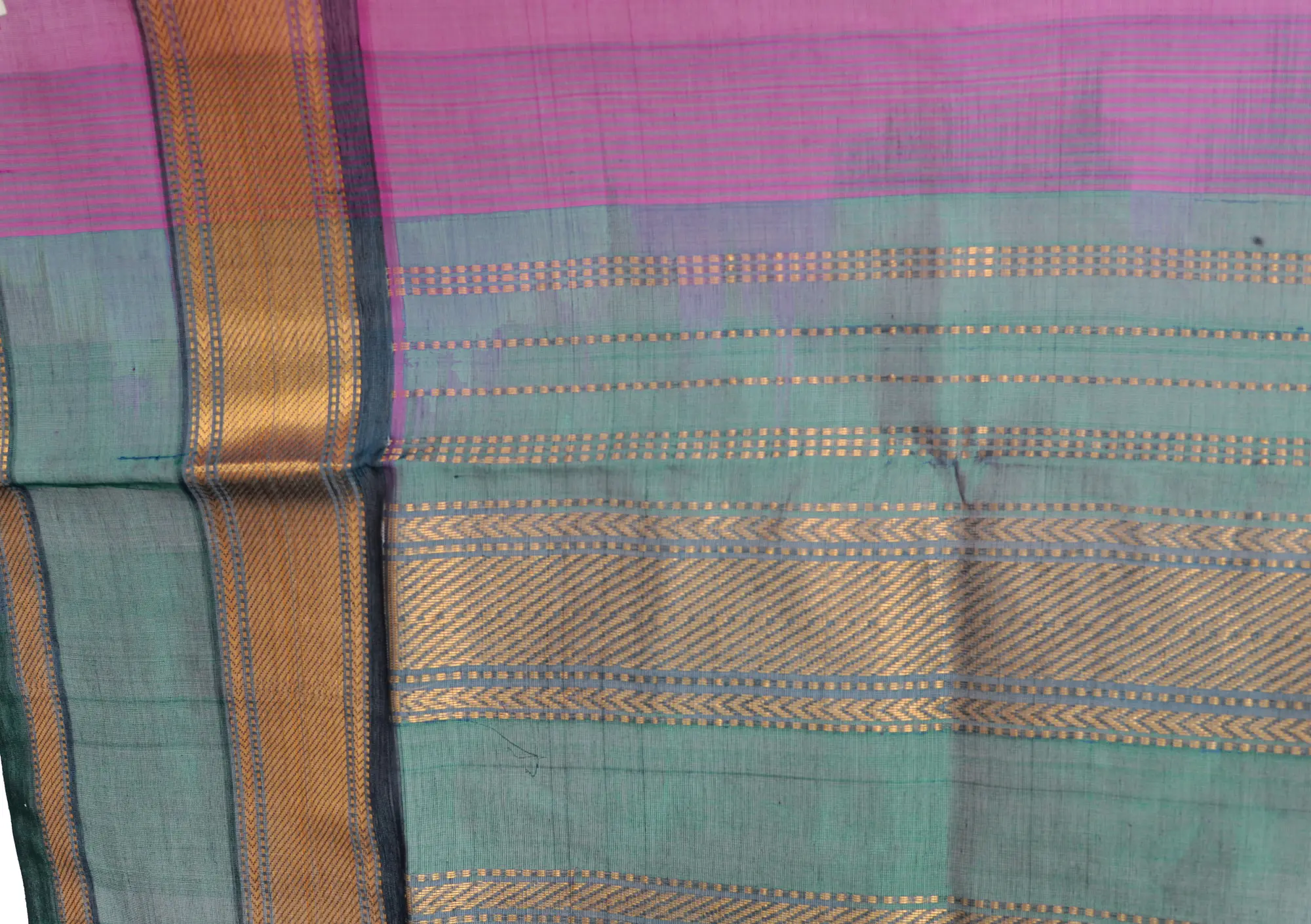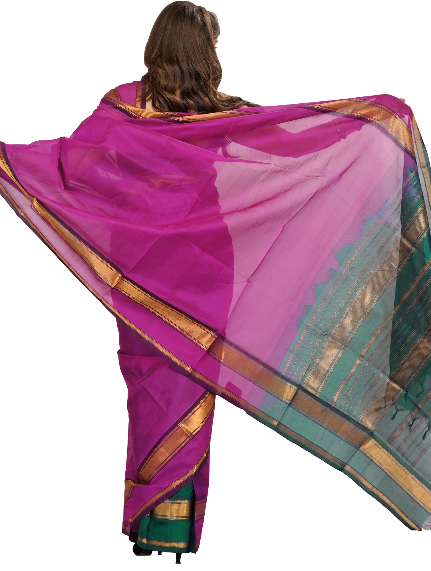 Hyacinth-Violet Plain Sari from Karnataka with Temple Woven Border