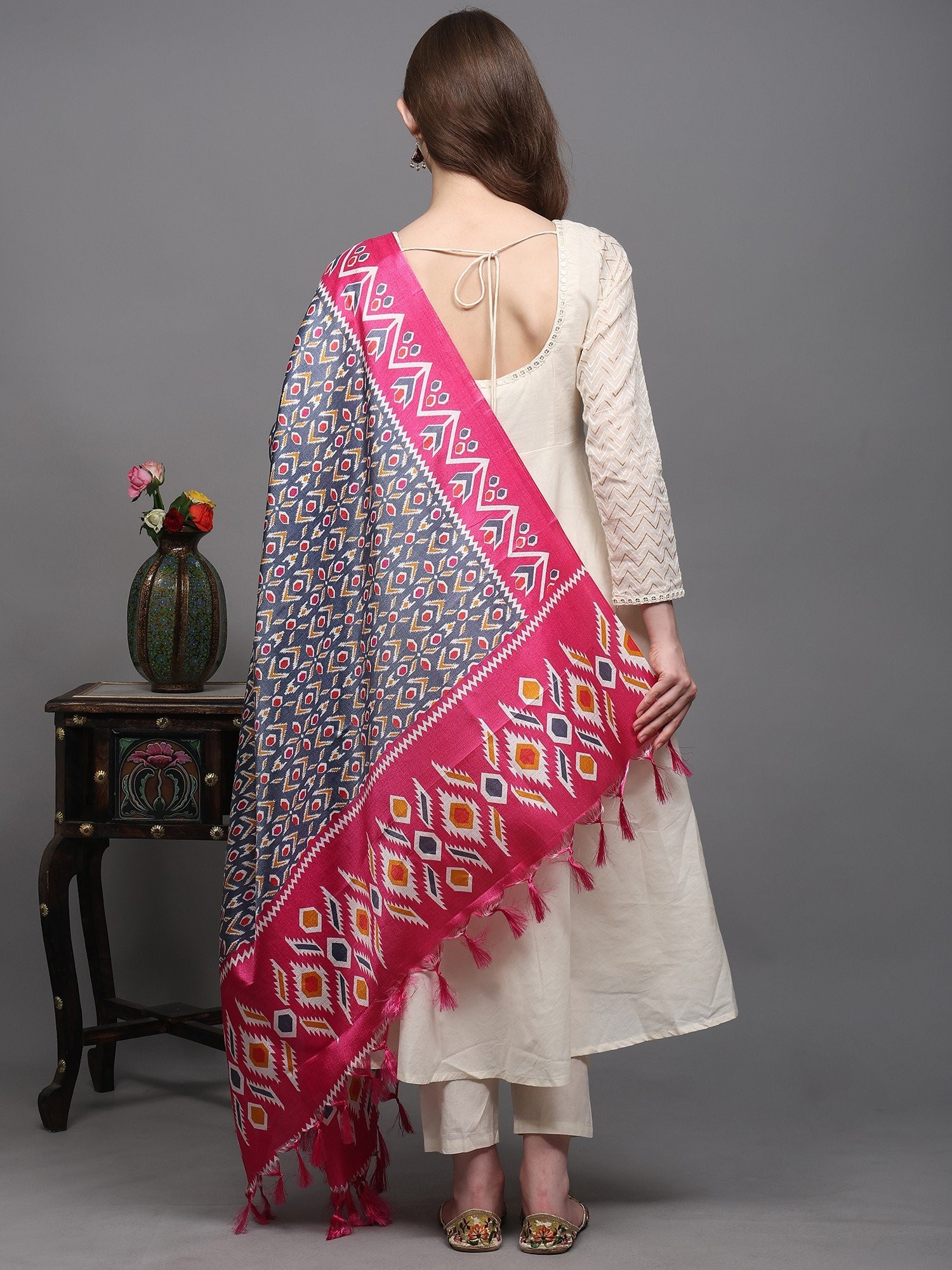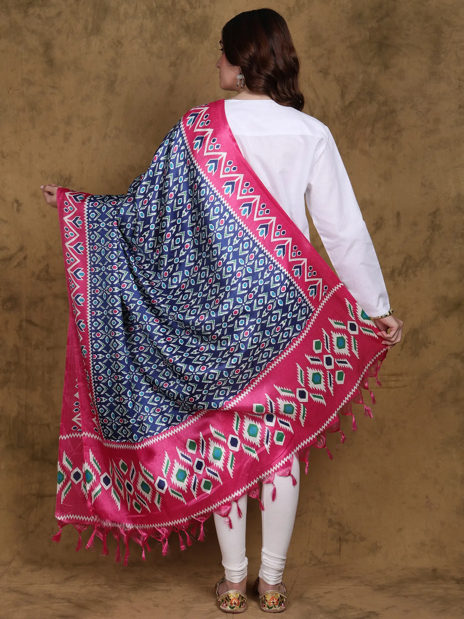 Art Silk Dupatta with Printed Folk Figures Inspired by Warli Art