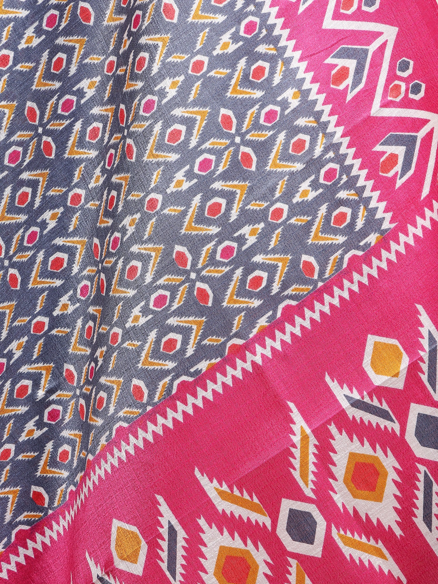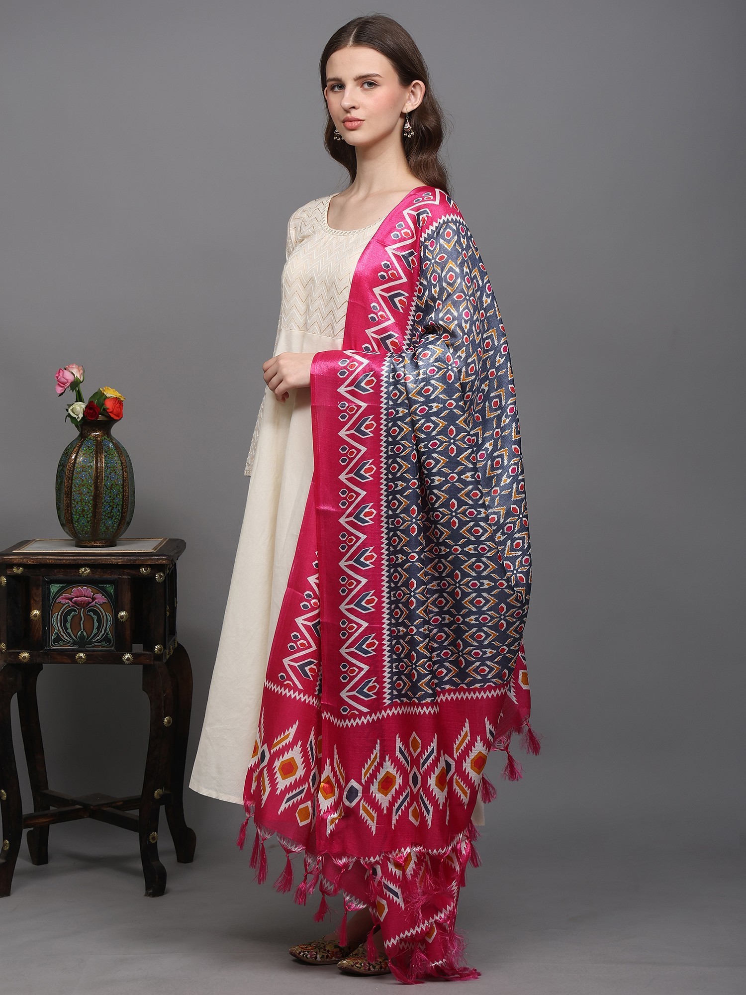 Art Silk Dupatta with Printed Maple Leaves and Chevron Border