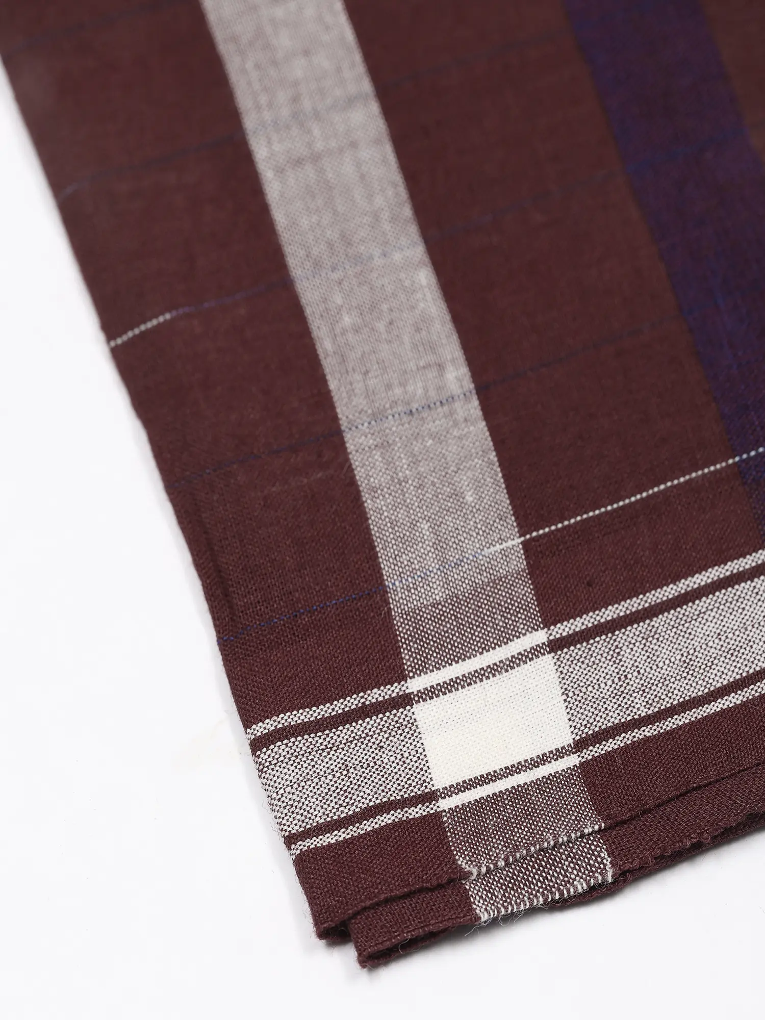 The rich, deep hue serves as a striking canvas for the meticulously crafted graph check patterns. Wide bands of crisp white alternate with narrower, subtler lines, punctuated by occasional, evocative slashes of indigo. These visual elements create a dynamic yet harmonious design that is both classic and contemporary. The generous dimensions, a length of 78 inches by a width of 47 inches, provide ample fabric for elegant draping and effortless styling, allowing for a truly personalized fit and look.