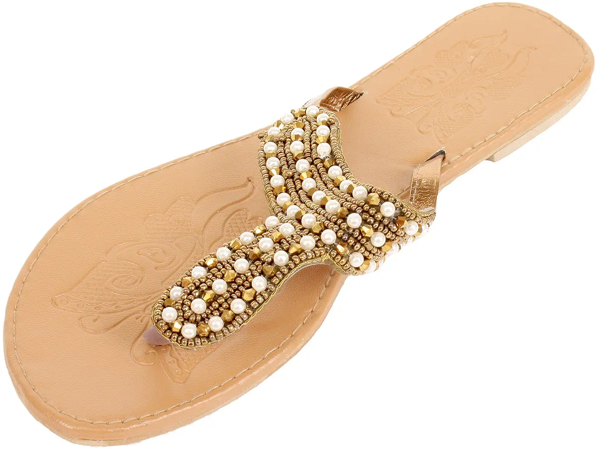 Indian-Tan Slippers with Beads-Embroidered Straps