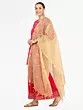 Complementing the resplendent kurti is a gracefully flowing Chanderi dupatta. This ethereal drape, woven with a delicate mesh and shimmering golden threads, adds a layer of sophistication and lightness. The Chanderi fabric, known for its lustrous sheen and fine texture, creates a beautiful contrast with the plush velvet of the kurti. The dupatta is finished with a golden border and delicate tassels, further amplifying its celebratory appeal. The sharara bottoms are designed to match the vibrant energy of the kurti, offering ample flare and comfort. The hem of the sharara is embellished with a matching golden embroidery, echoing the intricate designs on the kurti and creating a cohesive and harmonious look. This set is a true embodiment of traditional Indian fashion, reimagined with contemporary finesse.