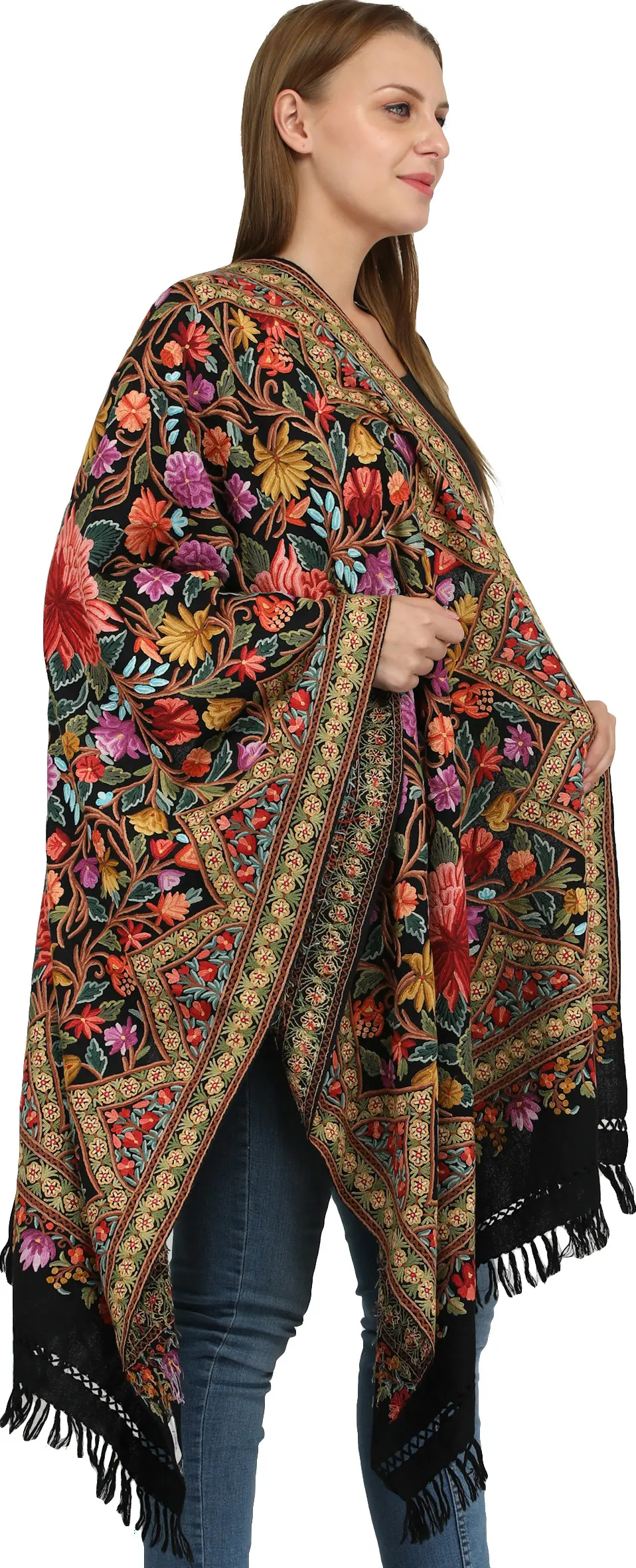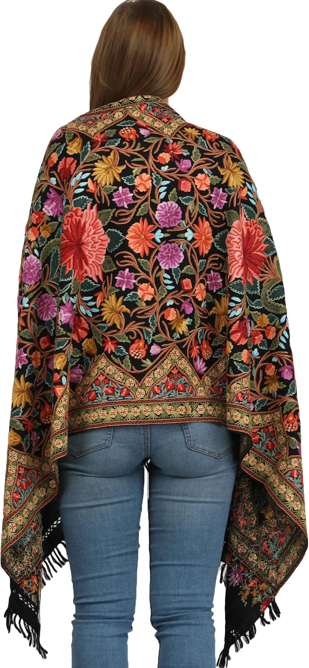 This hand-embroidered stole is more than just an accessory; it's a piece of wearable art. It effortlessly bridges the gap between casual and formal, making it suitable for a wide range of occasions. Drape it over a simple t-shirt and jeans for a touch of bohemian flair, or pair it with an evening gown to add a dramatic and sophisticated flourish. The intricate floral design brings a burst of color and personality to any outfit, transforming the ordinary into the extraordinary. This stole is a celebration of tradition, a symbol of enduring beauty, and a perfect expression of individual style.