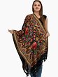 Brown and Black Kashmiri Stole with Aari Hand-Embroidered Paisleys All-Over