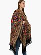 Black-Beauty Pure Wool Shawl from Punjab with Intricate Heavy Thread Embroidered Paisley and Flowers All-Over