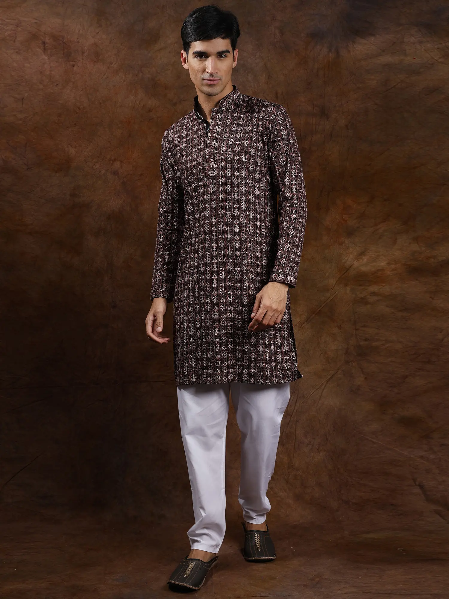 Multicolor Chikankari Embroidered Kurta Pajama Set with All-Over Printed Pattern and Sequin Work