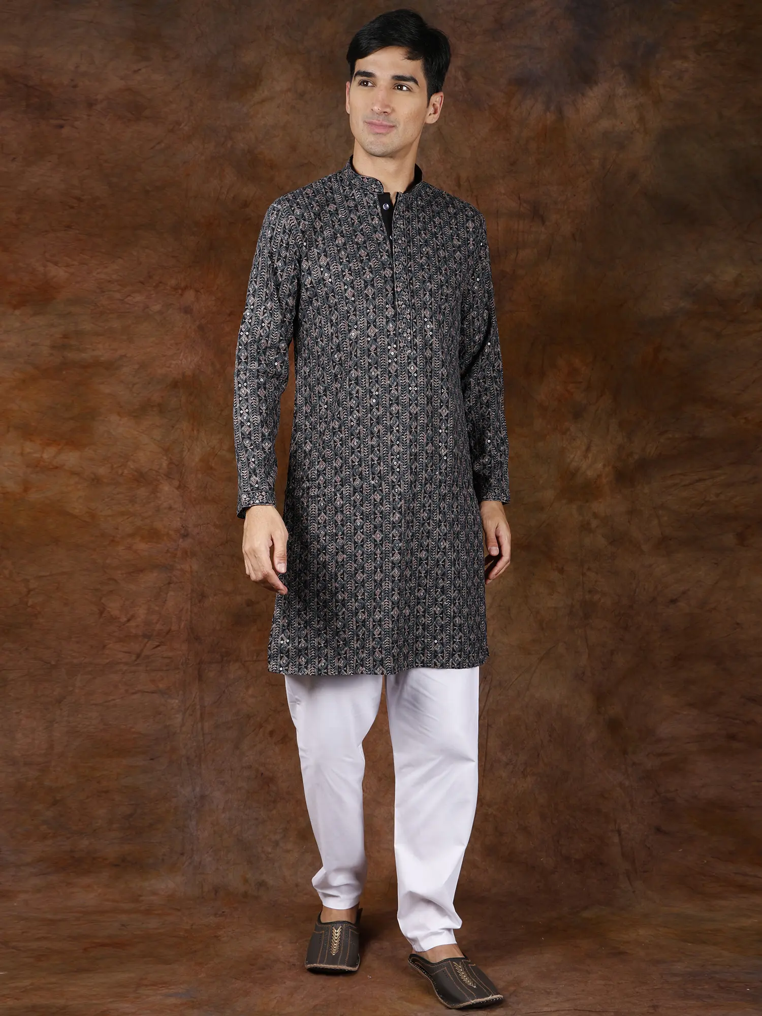 Solitary-Star Lukhnavi Chikankari Embroidered Kurta with Sequin Work and and Pant Style Pajama