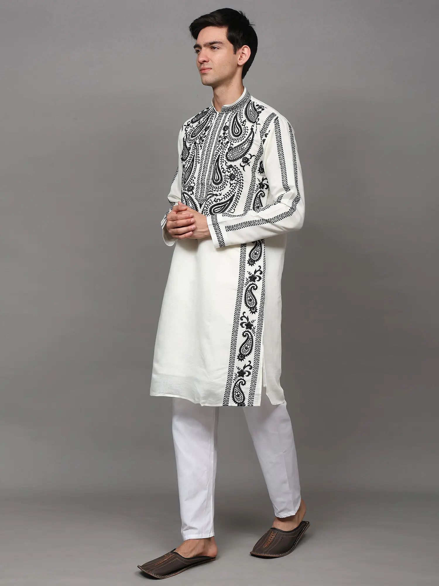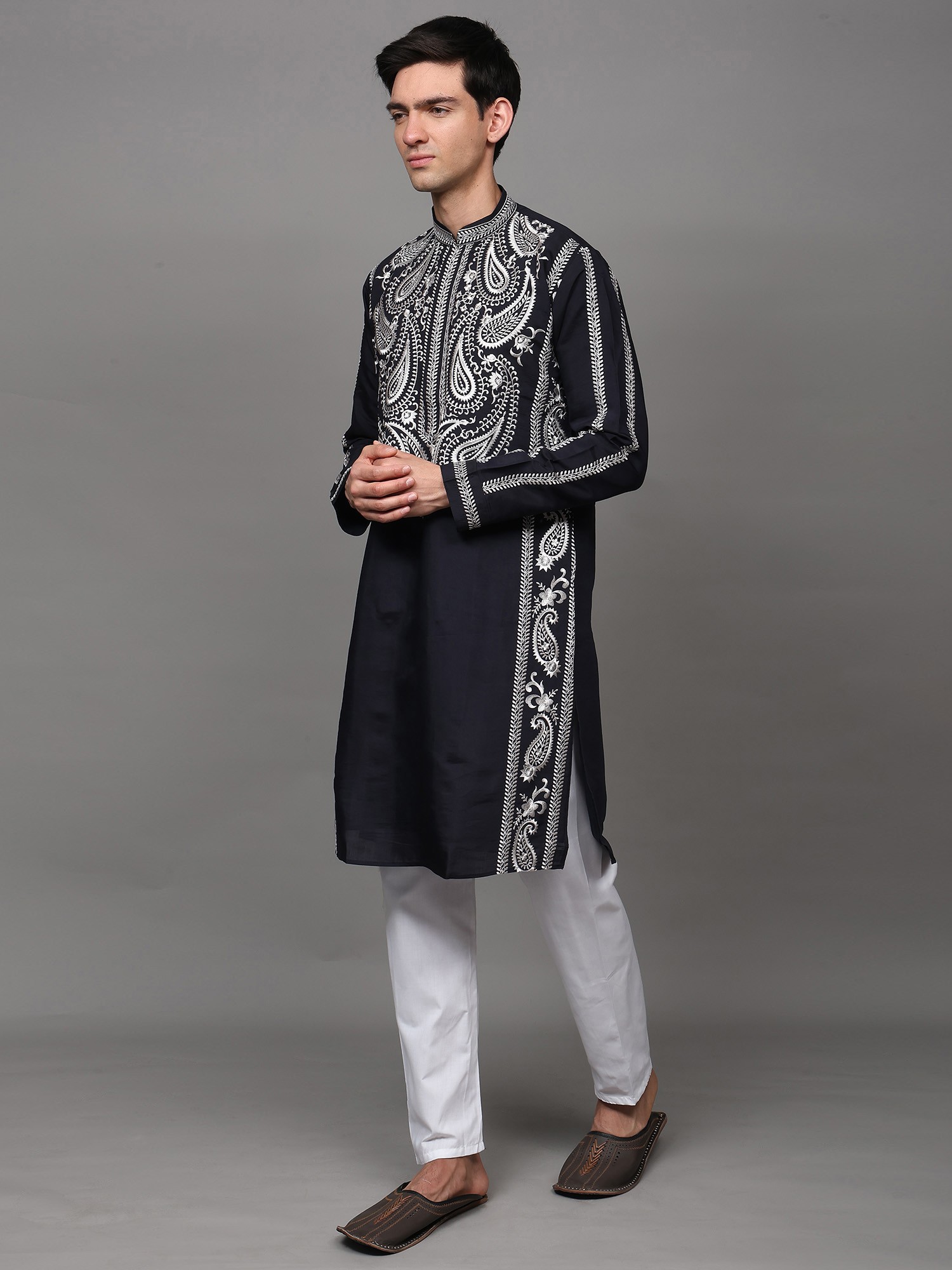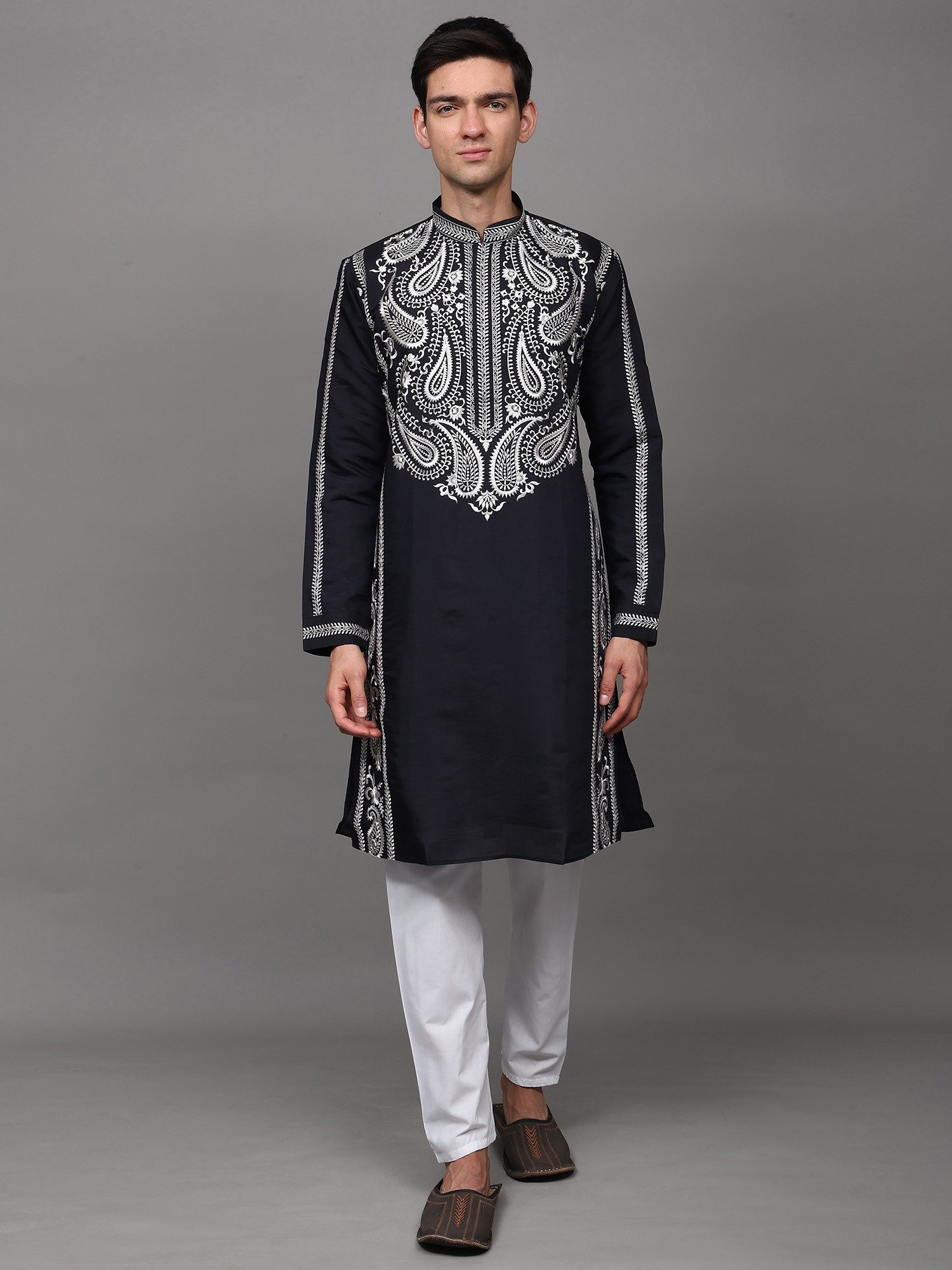 Kurta Pajama Set with Thread Weave and Embroidery on Neck