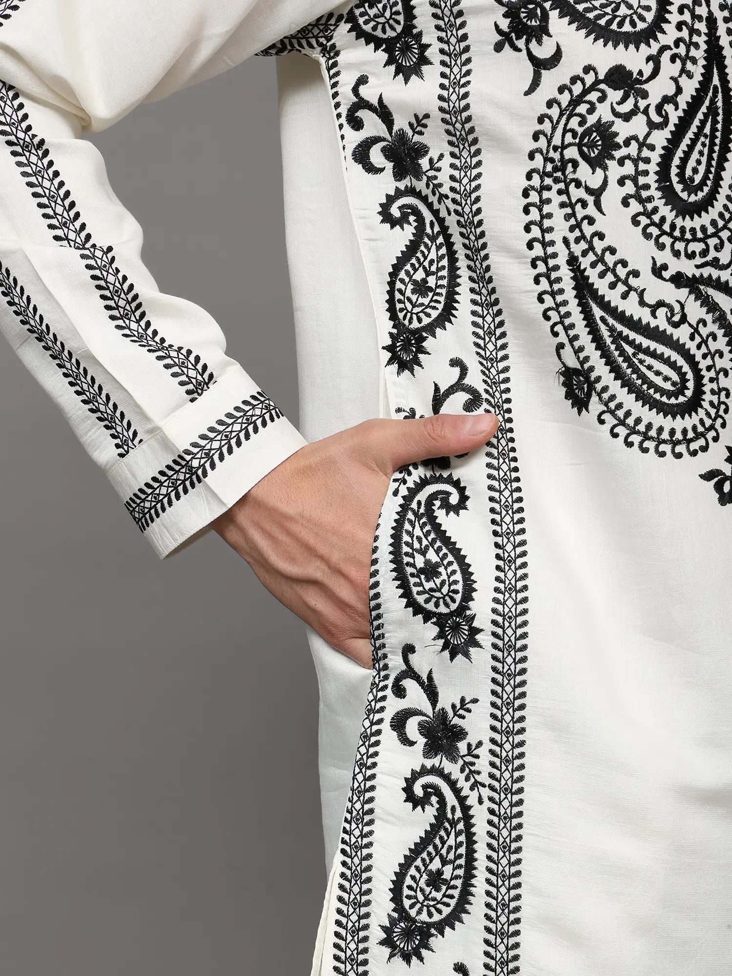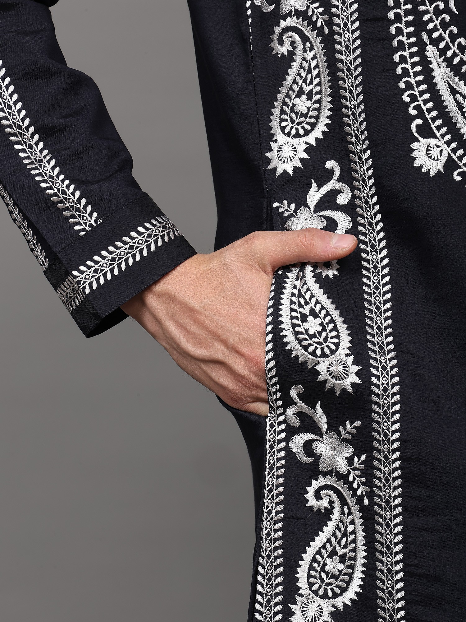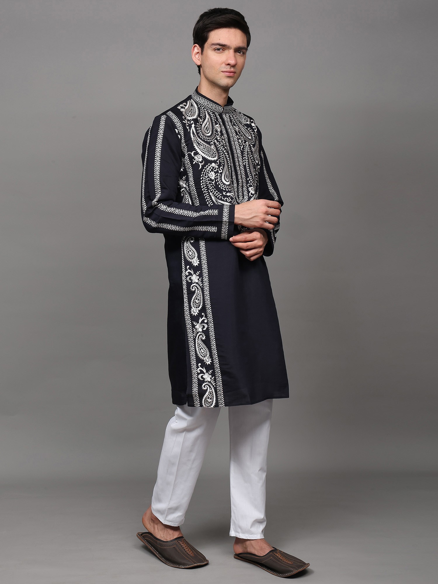 Kurta Pajama Set with Thread Weave and Embroidery on Neck