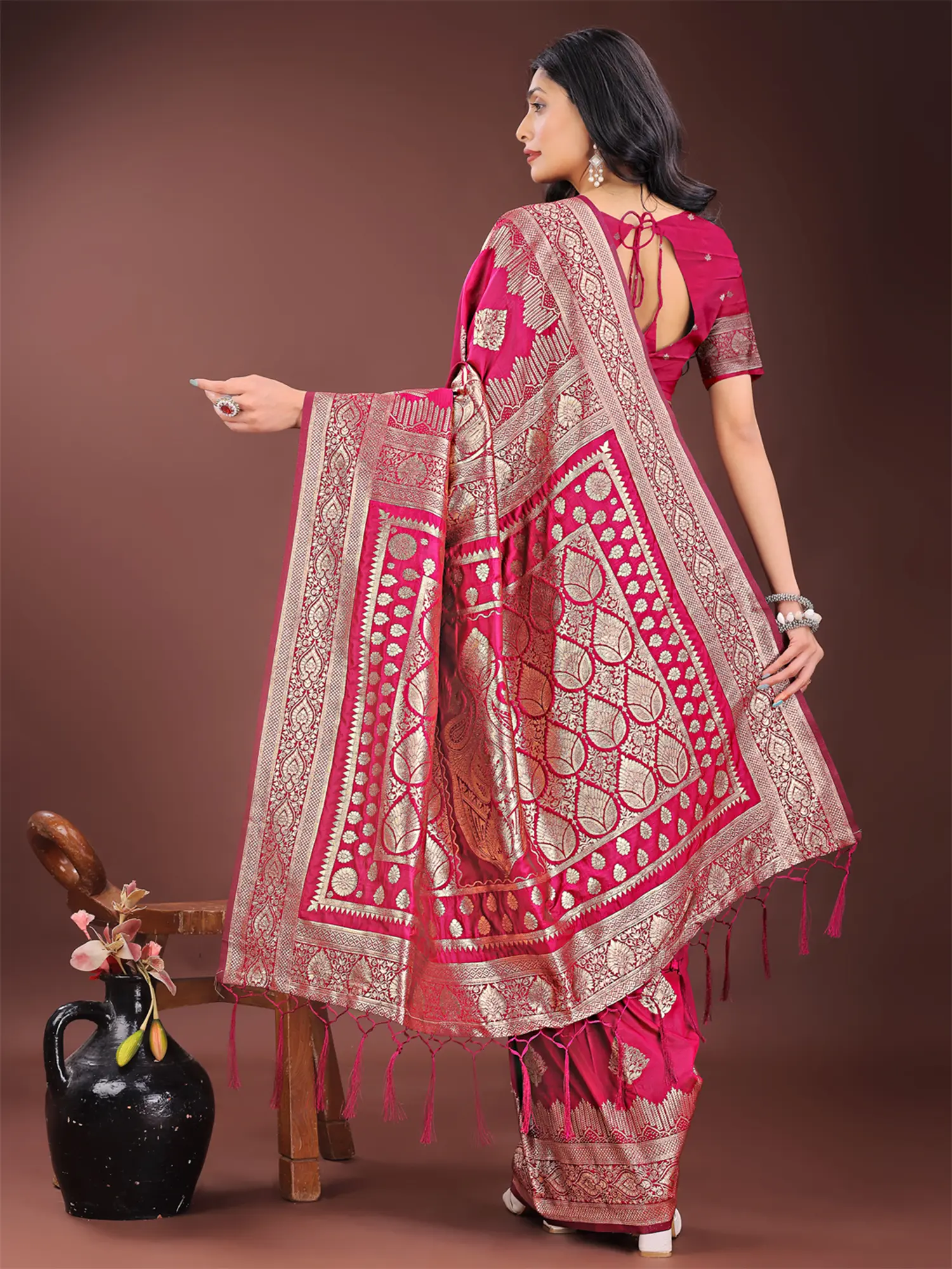 Banarasi Sari with Woven Flowers and Border