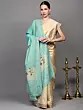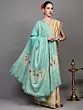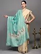 Almost-Aqua Kalamkari Stole with Chain Stitch Thread Embroidered Flowers in Multicolor