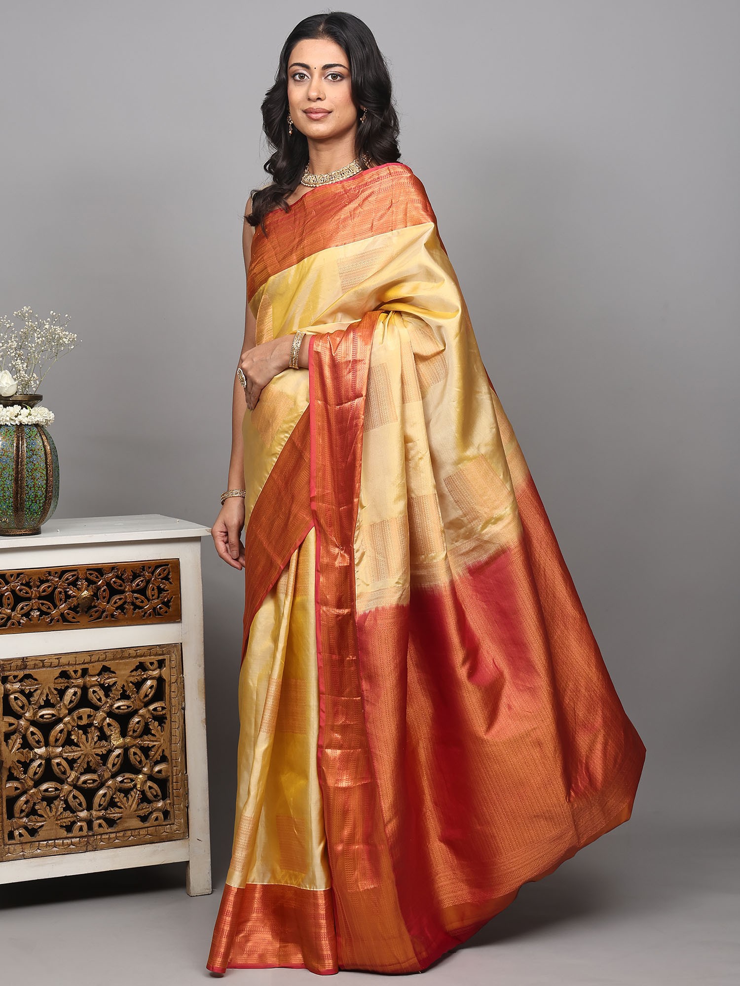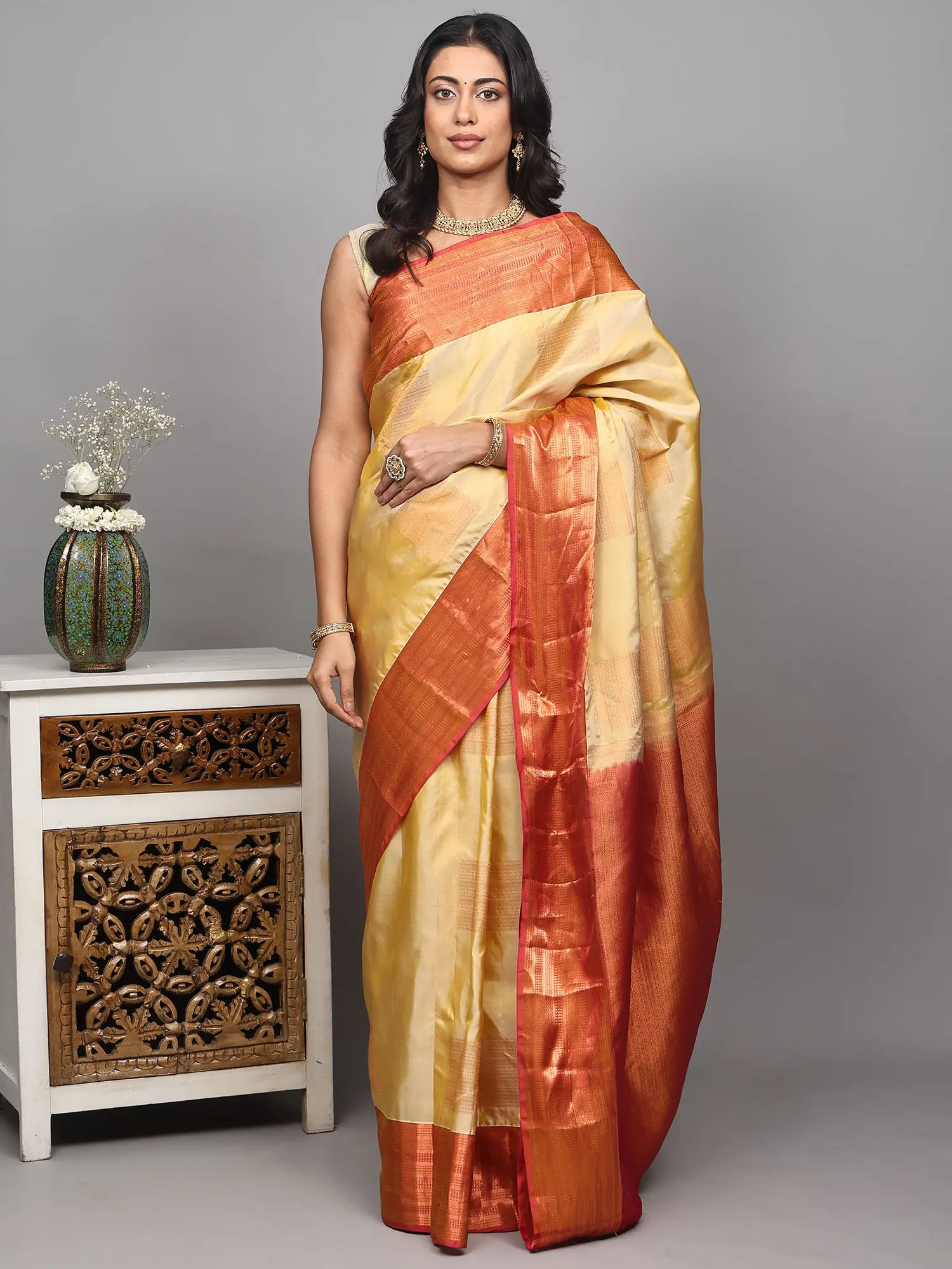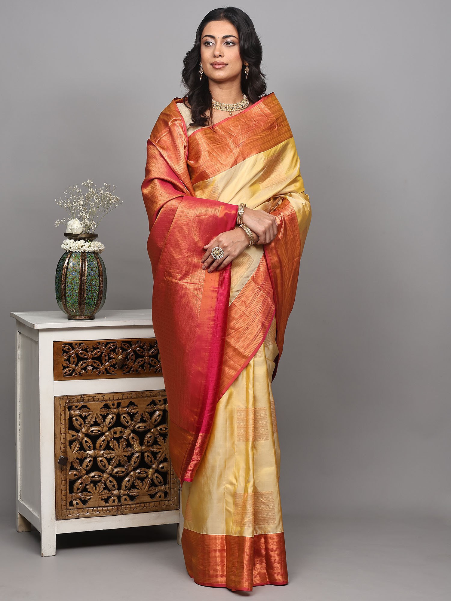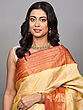 Apricot-Brandy Kanjivaram Saree from Bangalore with Wide Temple Border