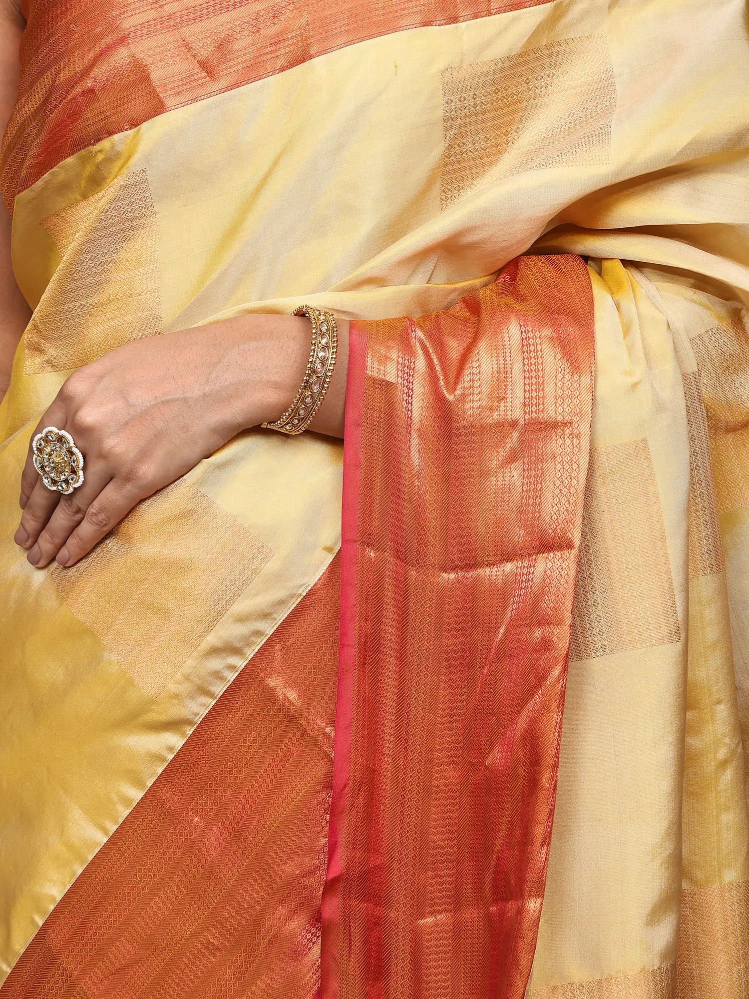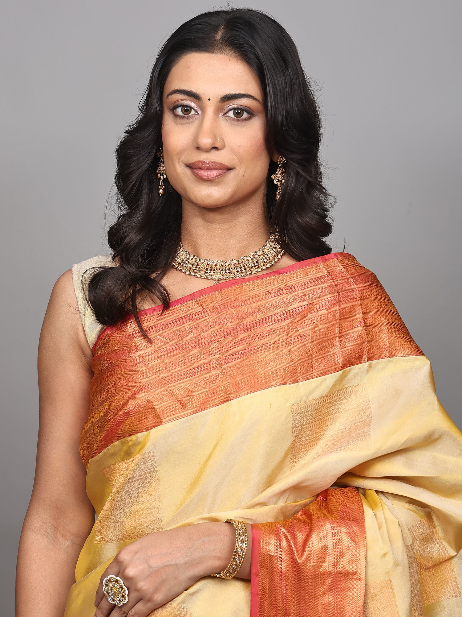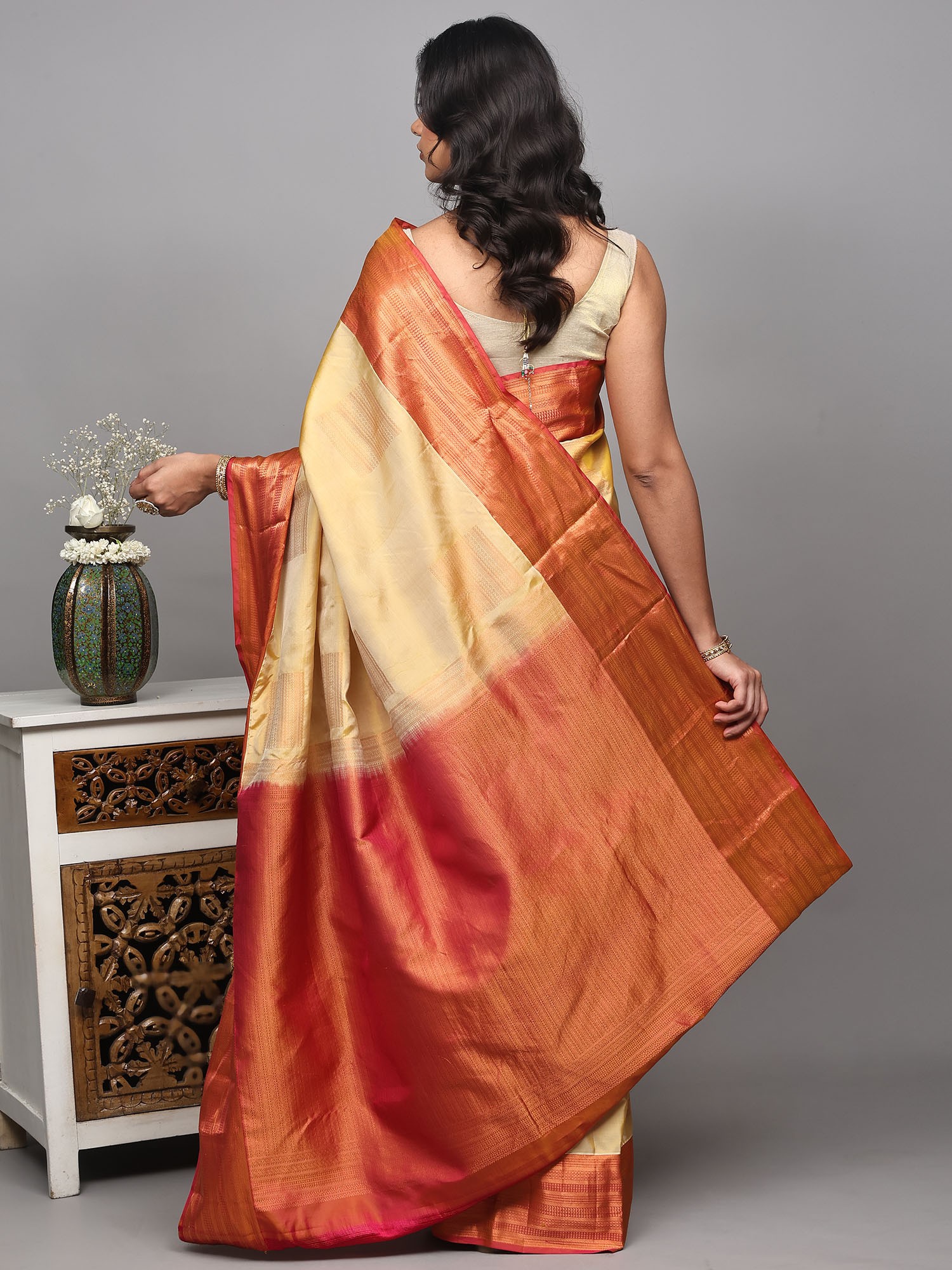 Apricot-Brandy Kanjivaram Saree from Bangalore with Wide Temple Border
