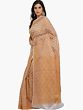 Ivory and Golden-Nugget Handloom Milmul Sari from Bangladesh with Woven Florals All Over