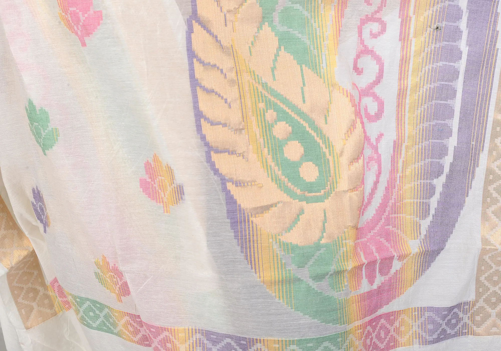 Rainbow Leheriya Bead-Mirror work Dupatta from Amritsar with Gotta Patti Border and Tassel