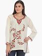 Bright-white Short Kurti with Embroidery and Dori on the Neck