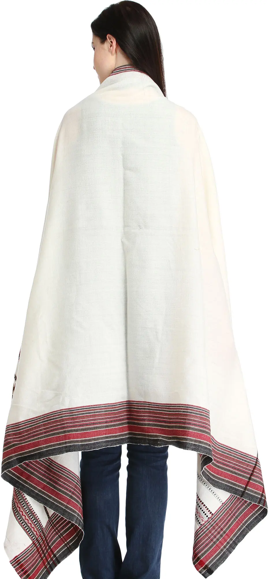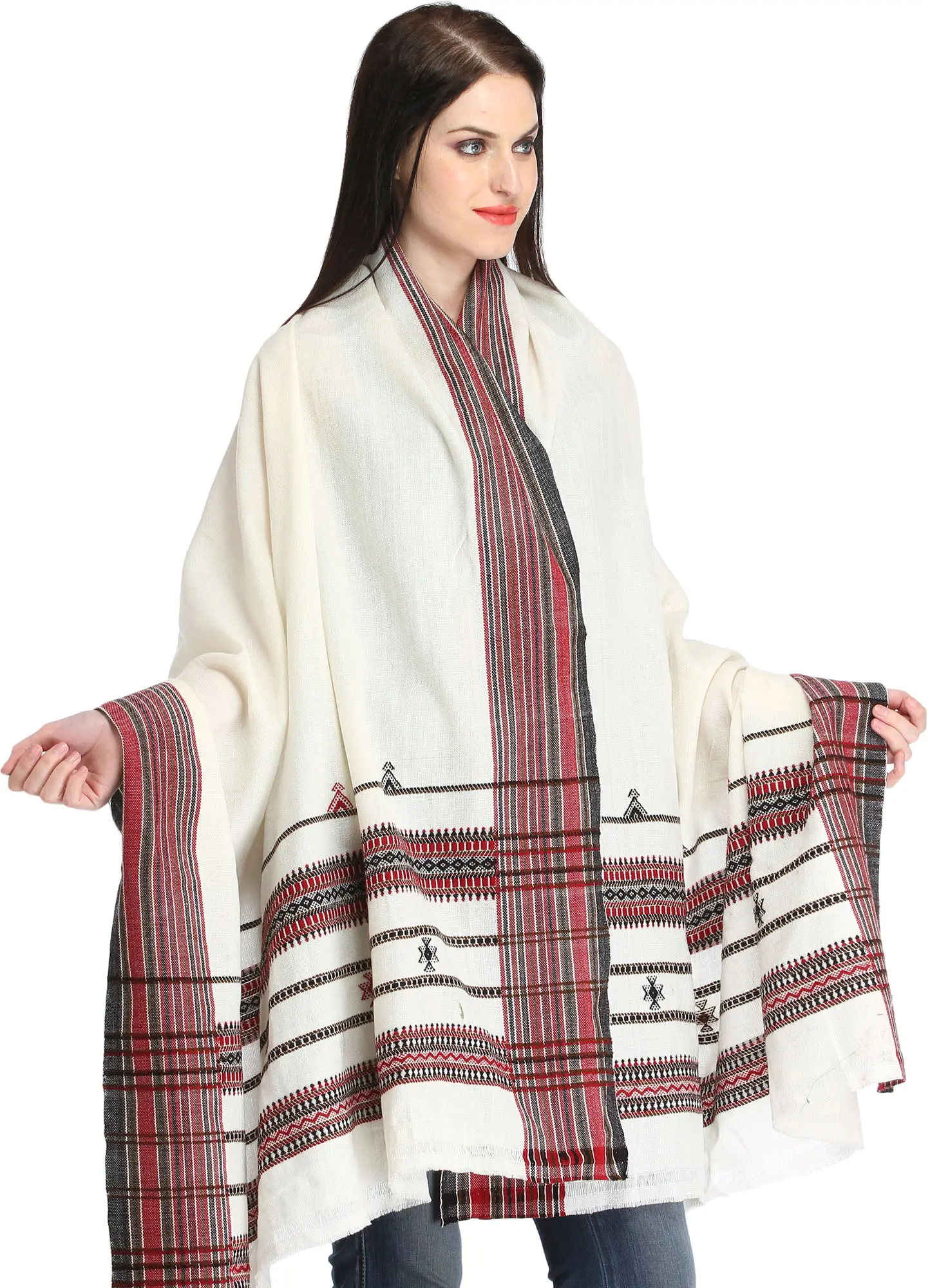 Discover the artistry and warmth of authentic Kutch craftsmanship with this exquisite ivory wool shawl. Originating from the vibrant textiles traditions of Gujarat, India, this shawl is a testament to the skill and dedication of its weavers. The pure wool composition ensures a luxuriously soft feel and exceptional warmth, making it a perfect companion for cooler days and evenings. Its timeless ivory hue serves as a versatile canvas, ready to complement a wide array of outfits, from casual ensembles to more formal attire.
