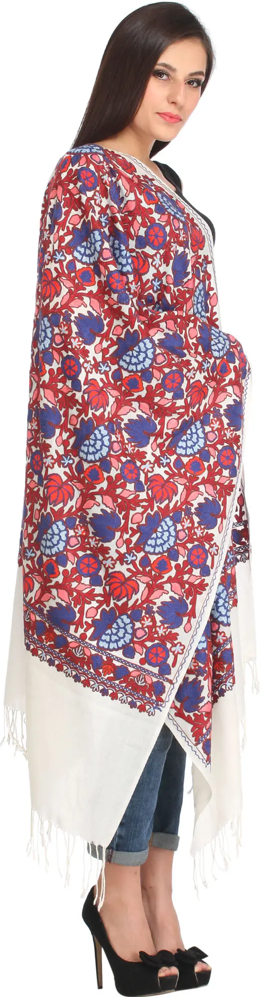 Kashmiri Stole with Crewel Embroidered Booties by Hand