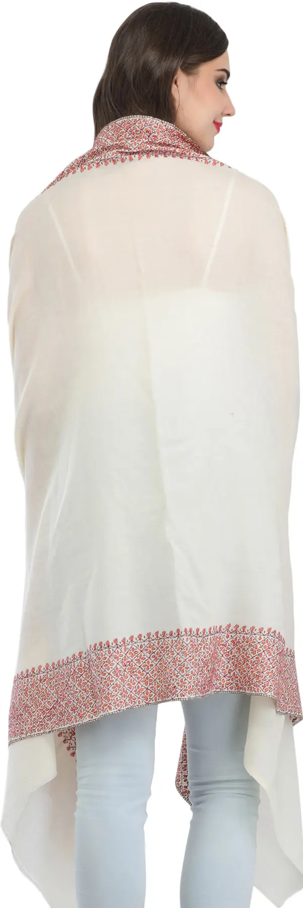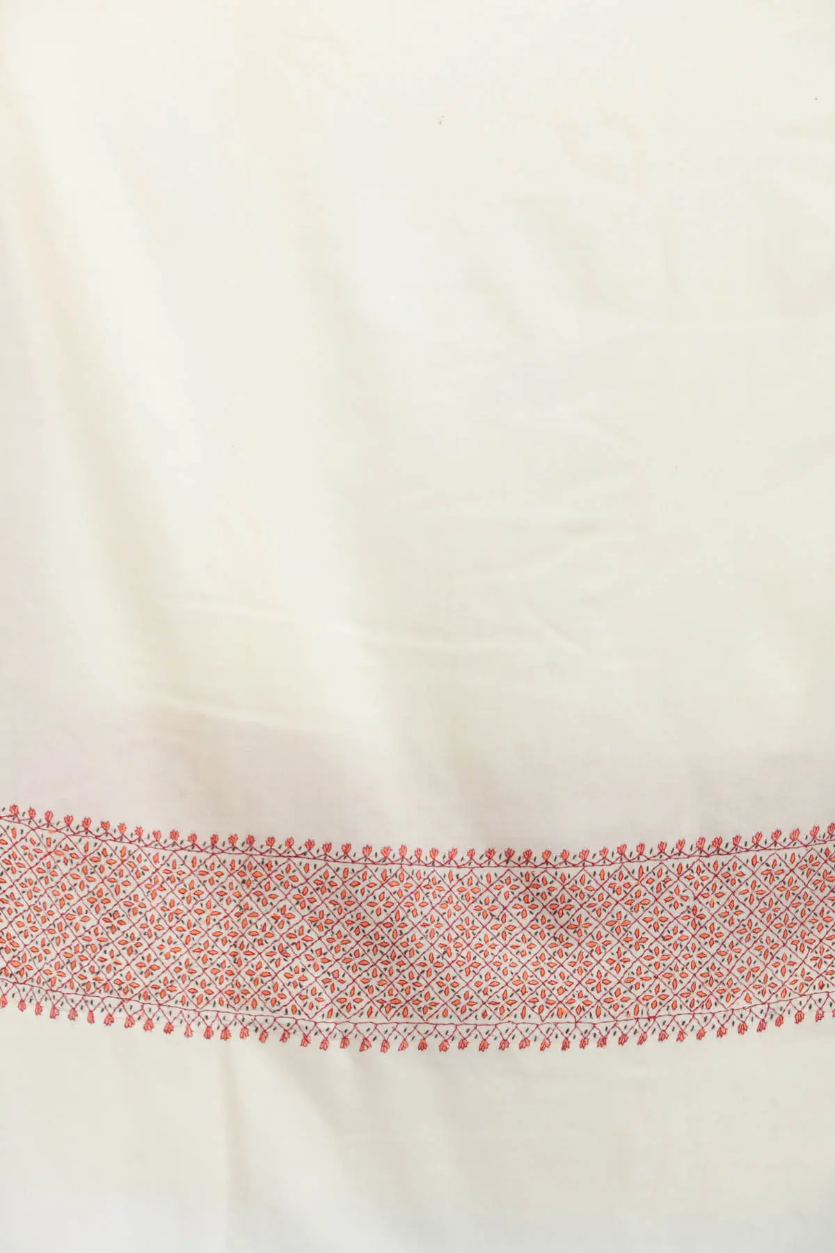 Ivory Tusha Stole with Hashidar Hand Embroidery on Border from Kashmir