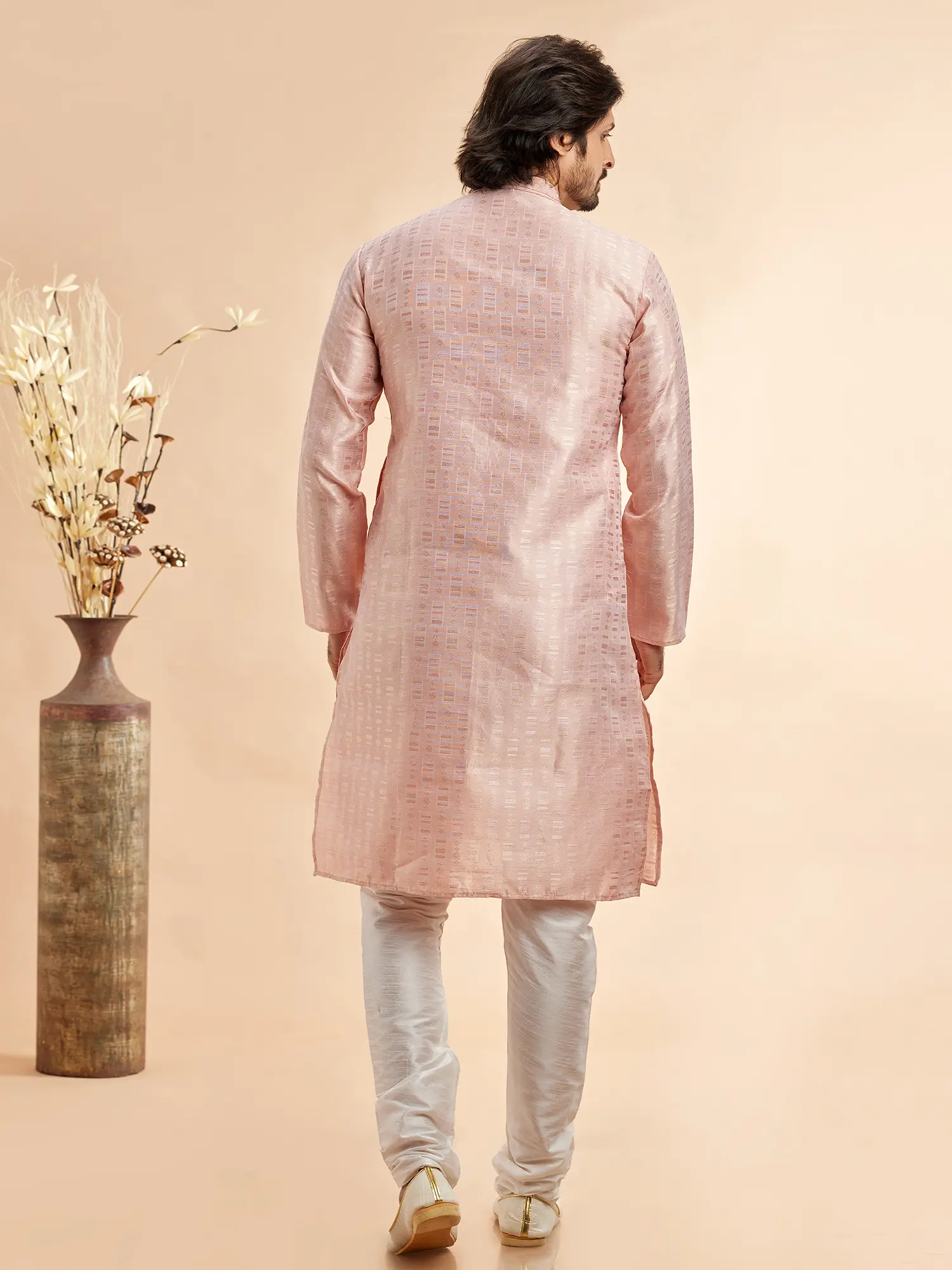 Men's Jacquard Art Silk Kurta Pajama With Dupion Silk Bottom Mirror And Machine Work Traditional Wedding And Festive Wear