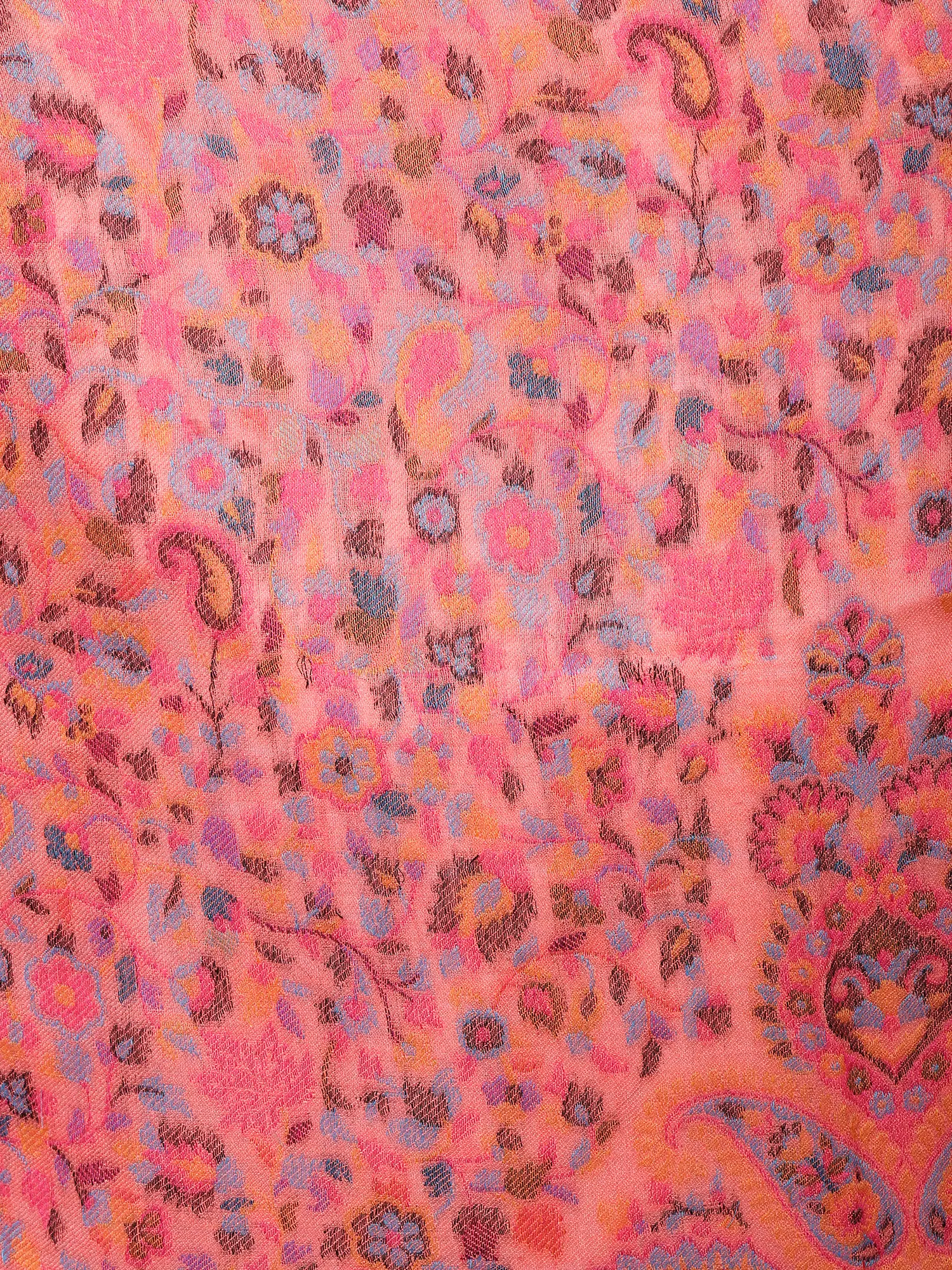 The term "Jamawar" itself evokes a sense of deep-rooted craftsmanship, referring to a specific weaving technique originating from the Indian subcontinent. This shawl embodies the essence of this ancient art form, where each thread is meticulously placed to create a complex and detailed pattern. The result is a fabric that is not only visually stunning but also remarkably soft and warm. The skill of the Amritsari artisans is evident in every detail, from the precise outlines of the paisleys to the delicate rendering of the blossoms. The interplay of colors – a warm coral base complemented by hints of muted greens, blues, and deeper reds – creates a harmonious and captivating design that draws the eye and invites admiration.