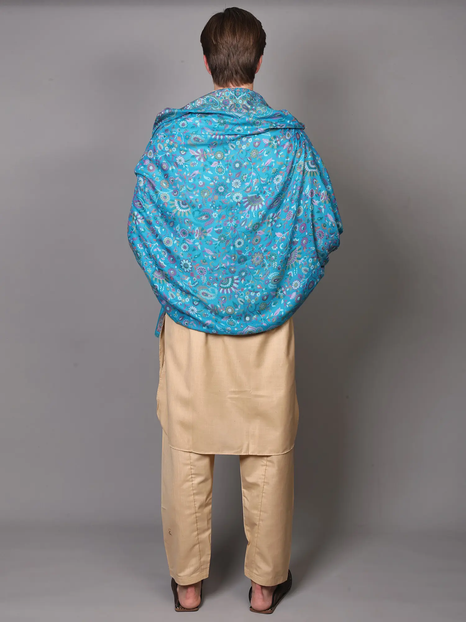 Men's Shawl with Woven Multiclor Flowers Motifs from Amritsar