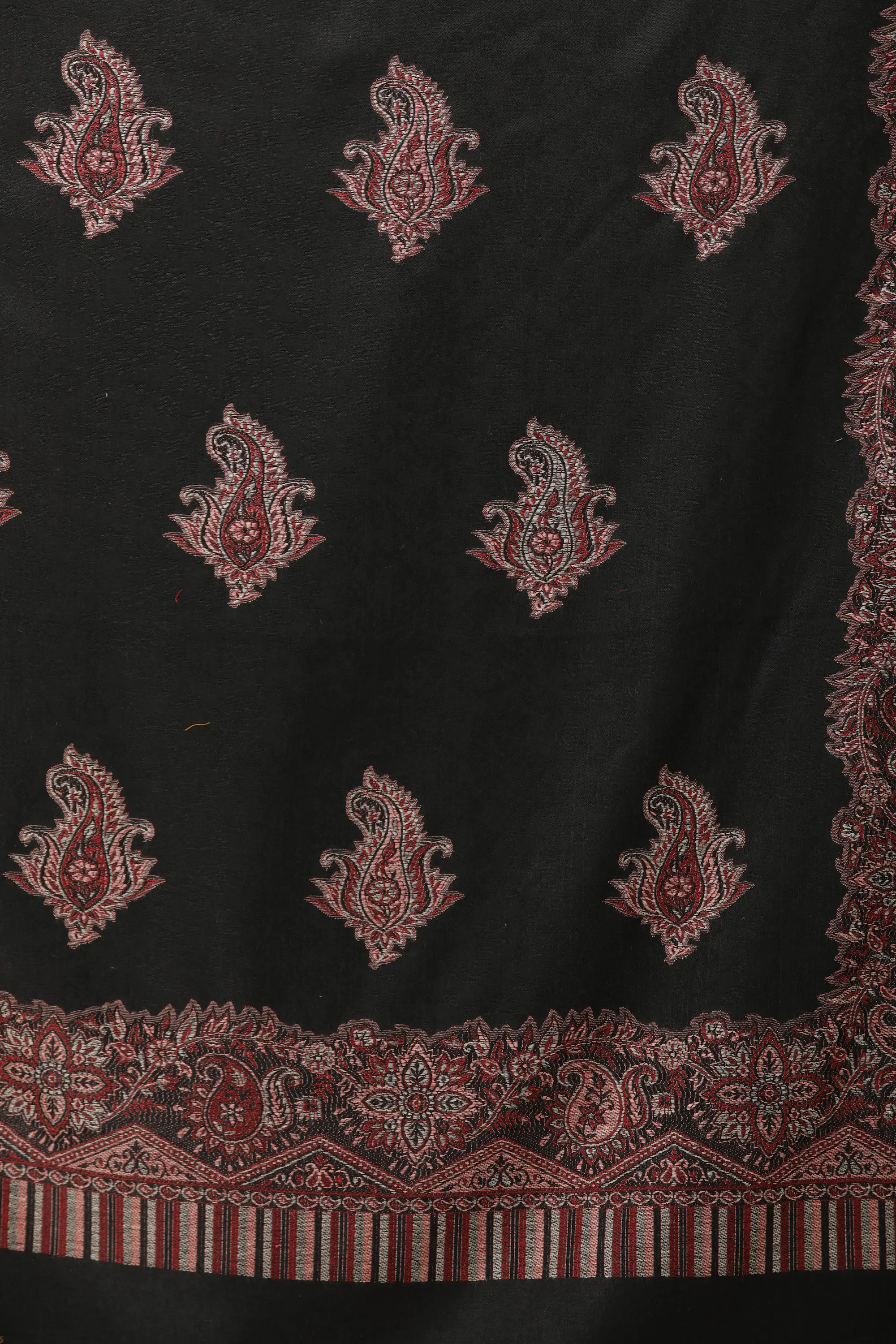 The true beauty of this shawl lies in its intricate Jamawar weave and the captivating all-over paisley motif. Each paisley, a symbol of fertility and life, is rendered with meticulous detail in a rich, contrasting palette. This traditional pattern, a hallmark of exquisite Indian textiles, creates a mesmerizing visual texture that draws the eye and sparks admiration. The detailed woven border further enhances the opulent feel, framing the rich design with a decorative flourish that speaks of a bygone era of fine craftsmanship. This is more than just an accessory; it's a wearable piece of art.