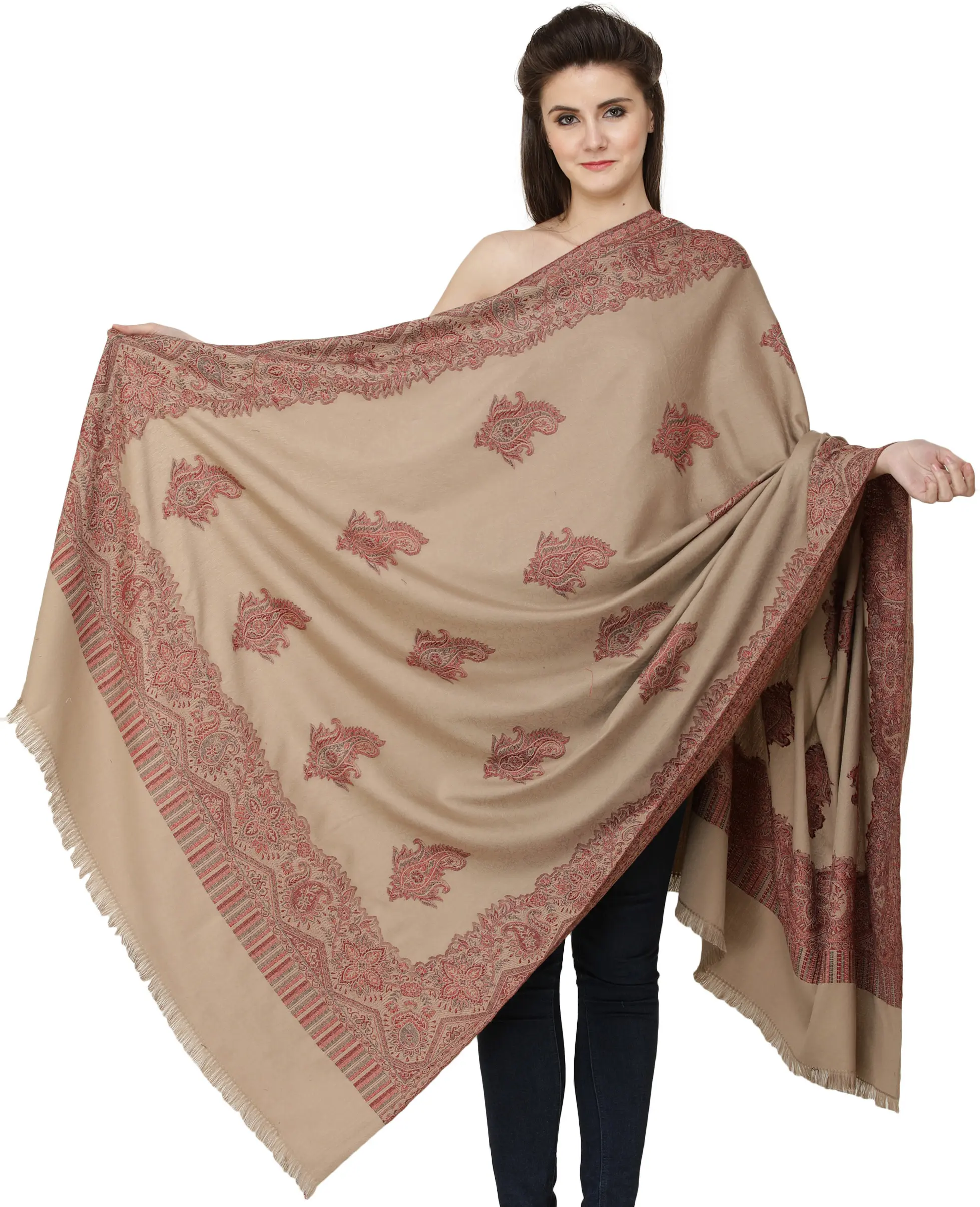 Jamawar Shawl with Woven Border and Paisleys All-Over