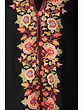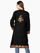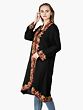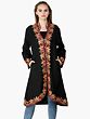 Jet-Black Long Jacket from Kashmir with Chain Stitch Hand-Embroidered Multi-colored Flowers and Vines