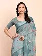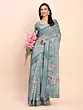 Pattens-Blue Japan Crepe Floral Digital Print Designer Casual Wear Saree With Blouse