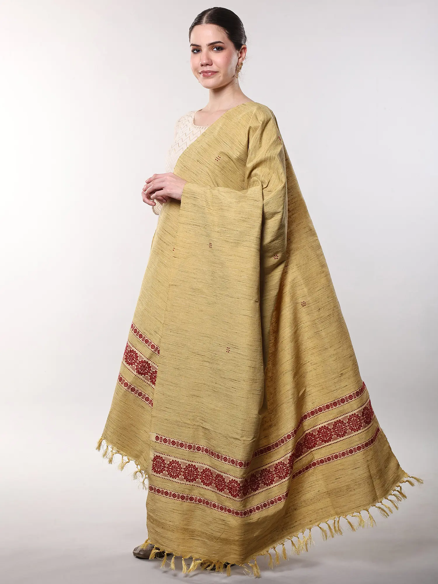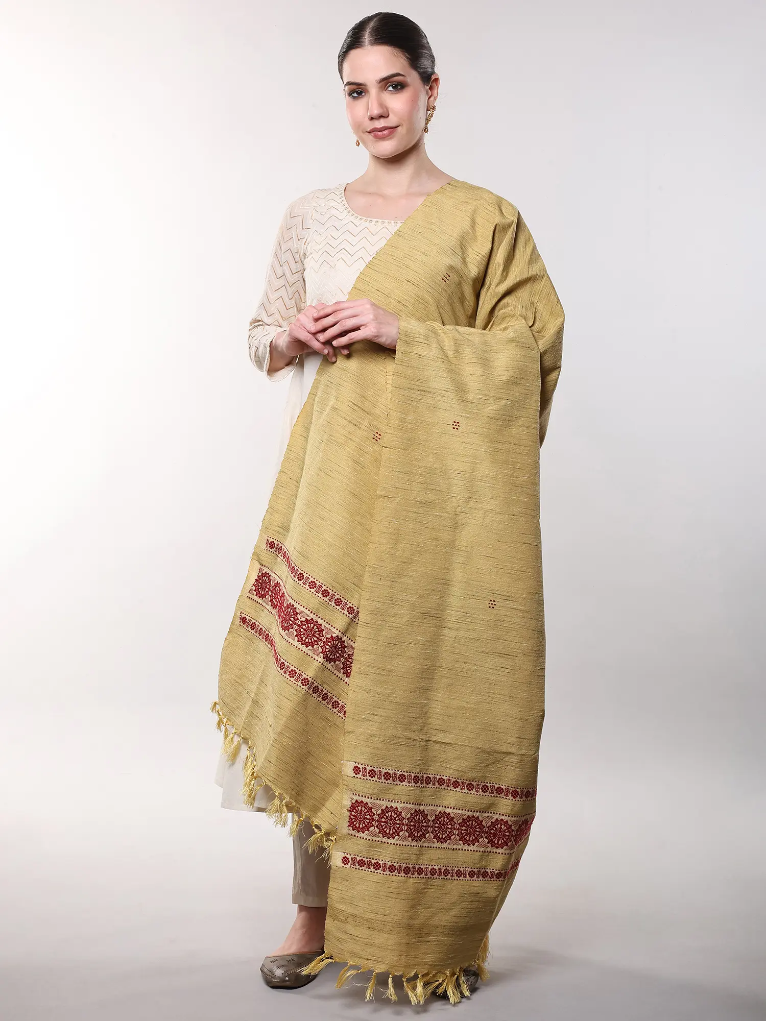 Imagine this adding a sophisticated layer to your favorite kurta set for a festive gathering or a casual day out. It serves as a perfect accompaniment to both traditional Indian wear and more contemporary outfits, offering a touch of understated luxury. Drape it artfully over your shoulders for an evening affair or wear it loosely to add a splash of color and texture to your daily attire. Its substantial size ensures it can be styled as a light shawl or a statement scarf.