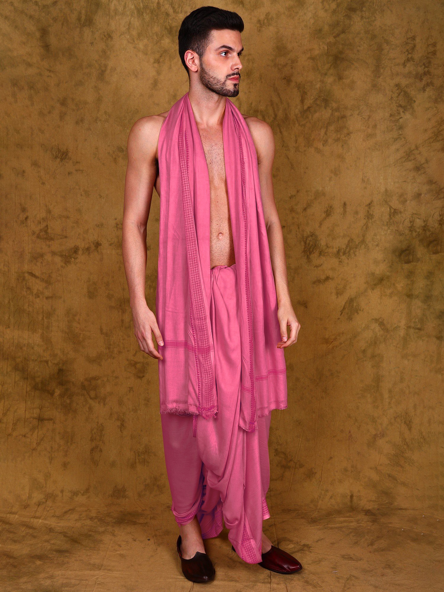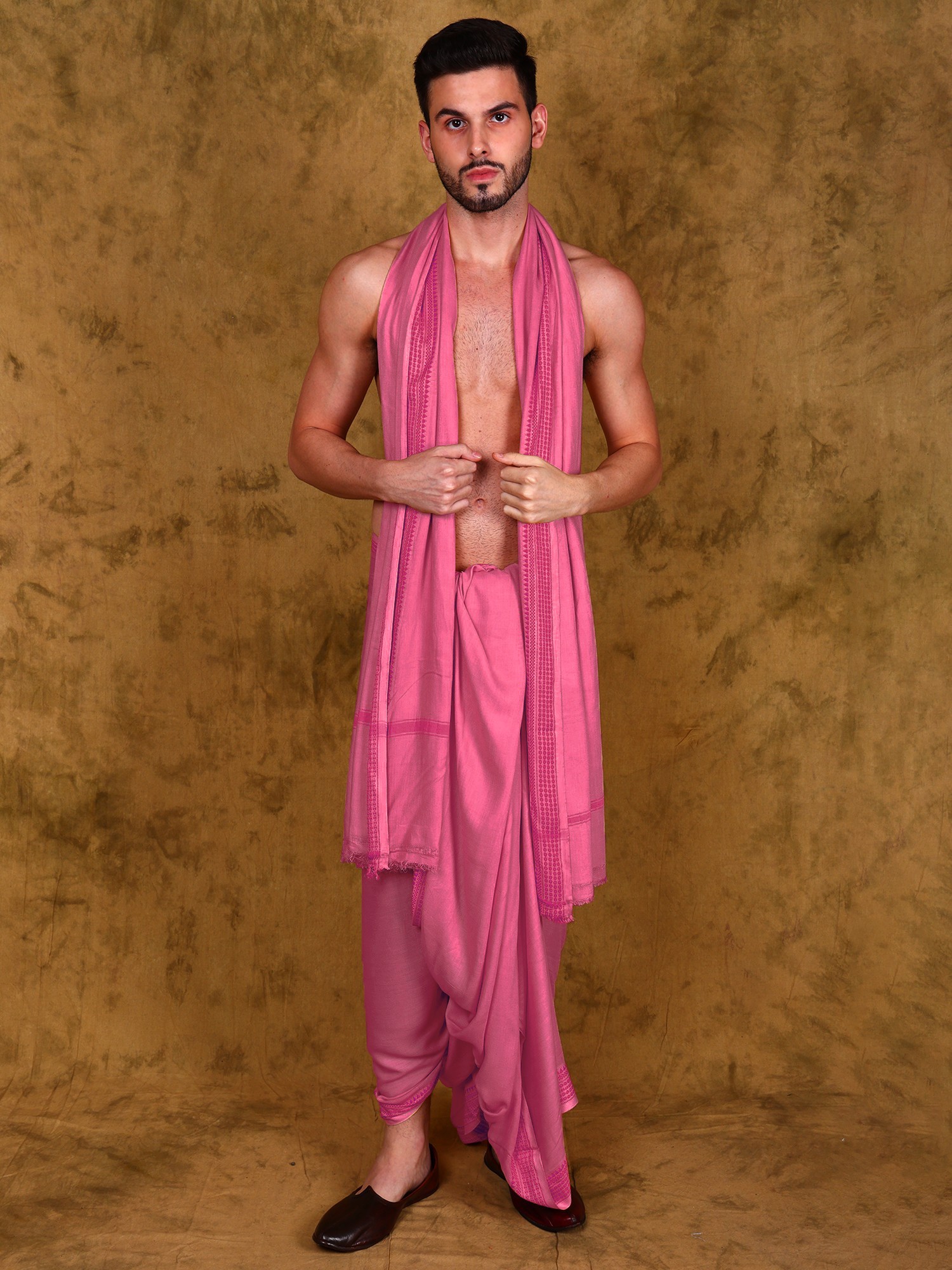 Ready to Wear Dhoti and Angavastram Set with Woven Temple Border