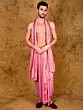 Off-White Plain Drape Dhoti and Angavastram Set with Striped Border