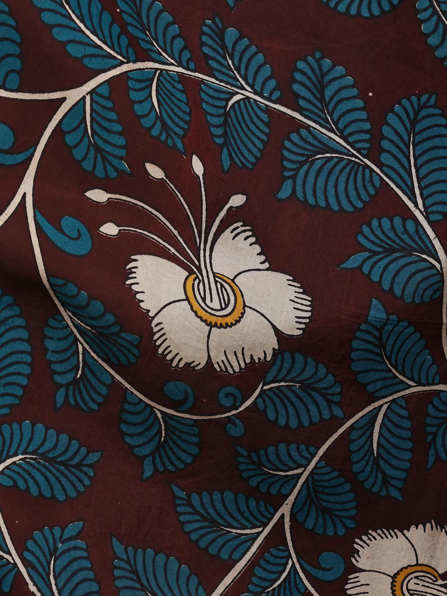Solitary-Star Kalamkari Aari Embroidered Stole with Printed Flowers from Amritsar
