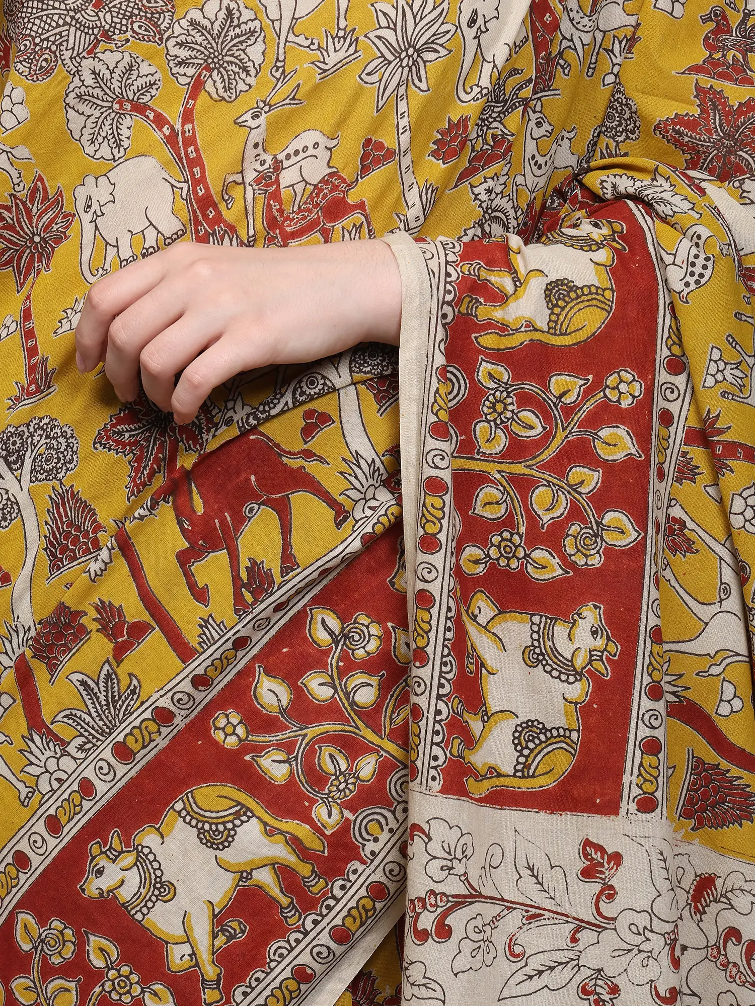 Blackened-Pearl Pure Cotton Kalamkari Dandiya Folk Dance Blocked Printed Fabric